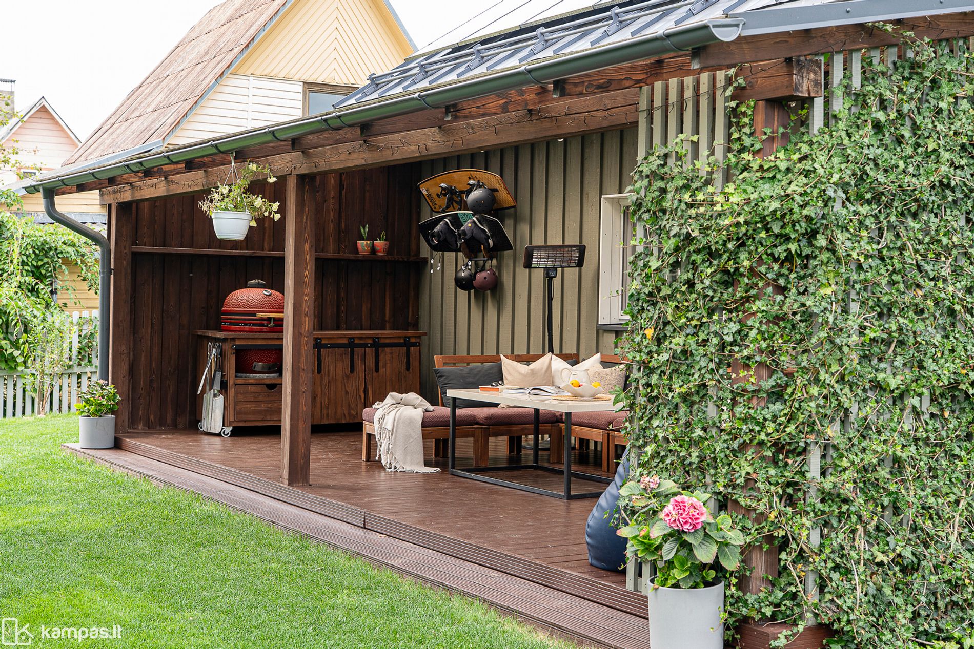 - Sutvarkyta lauko aplinka, yra vejos robotas;
