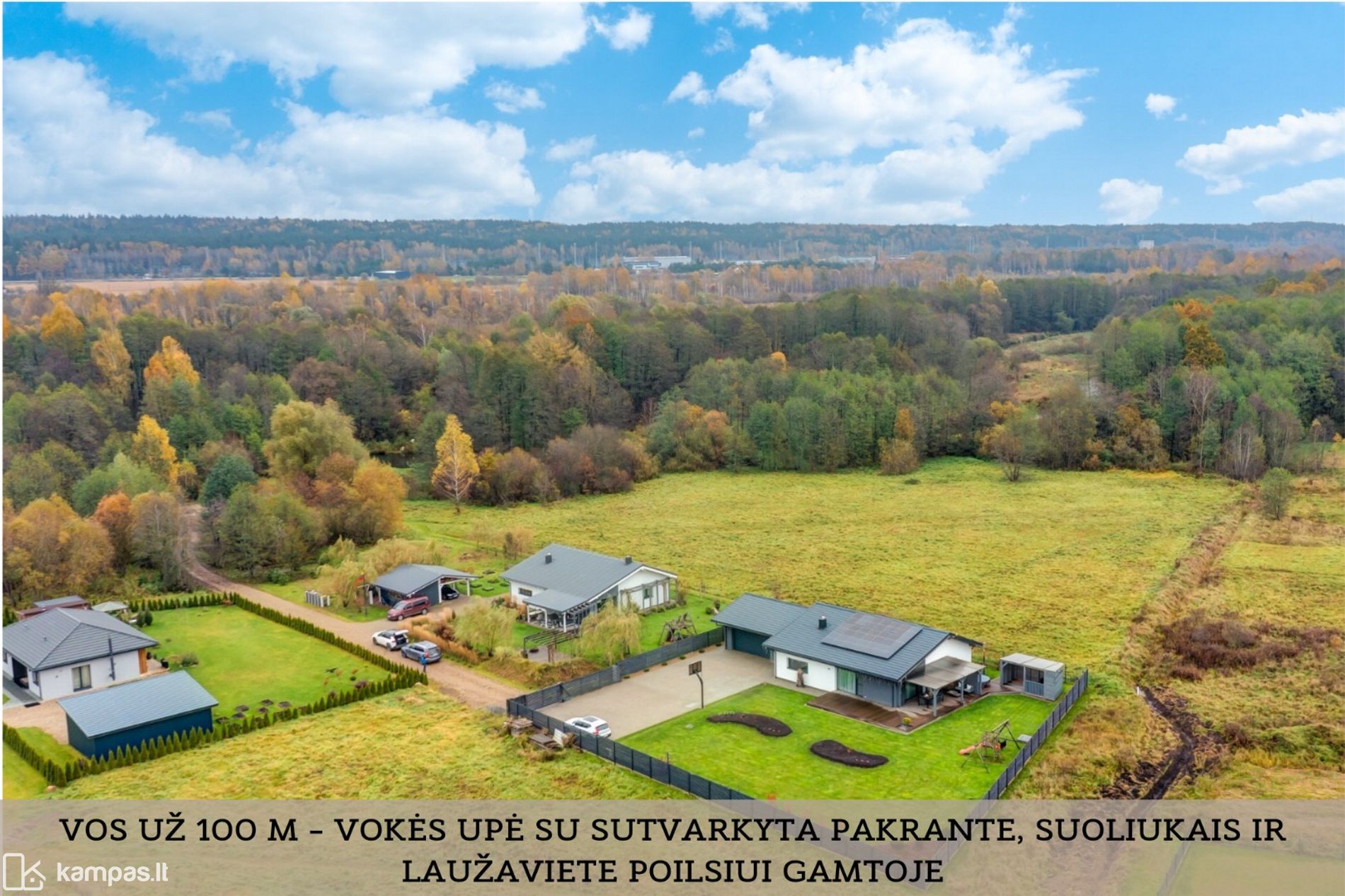 - Rami, prižiūrėta kaimynystė – aplink naujos statybos individualūs namai;