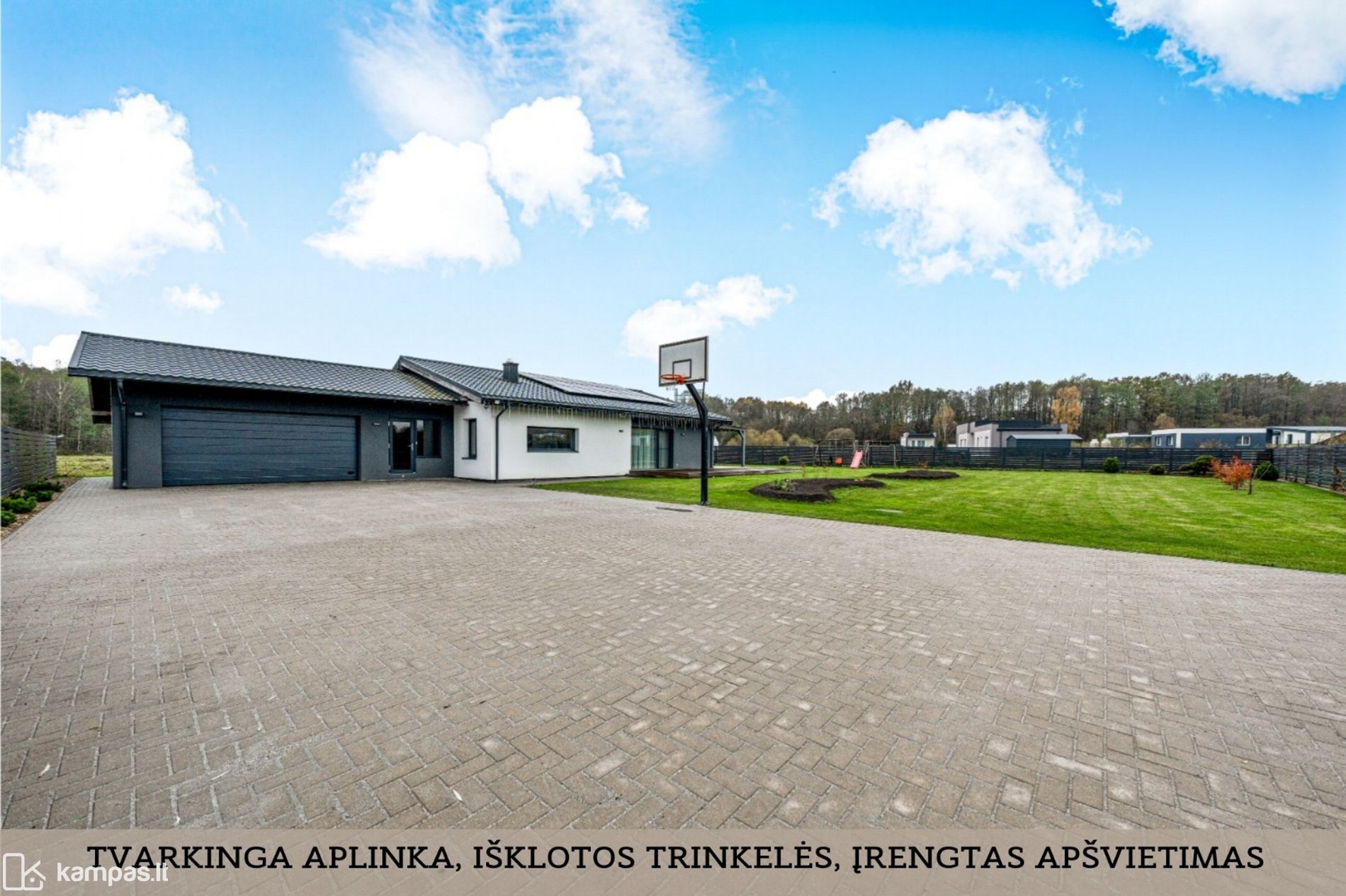 - Tvarkingai sutvarkytas, aptvertas sklypas su trinkelėmis;