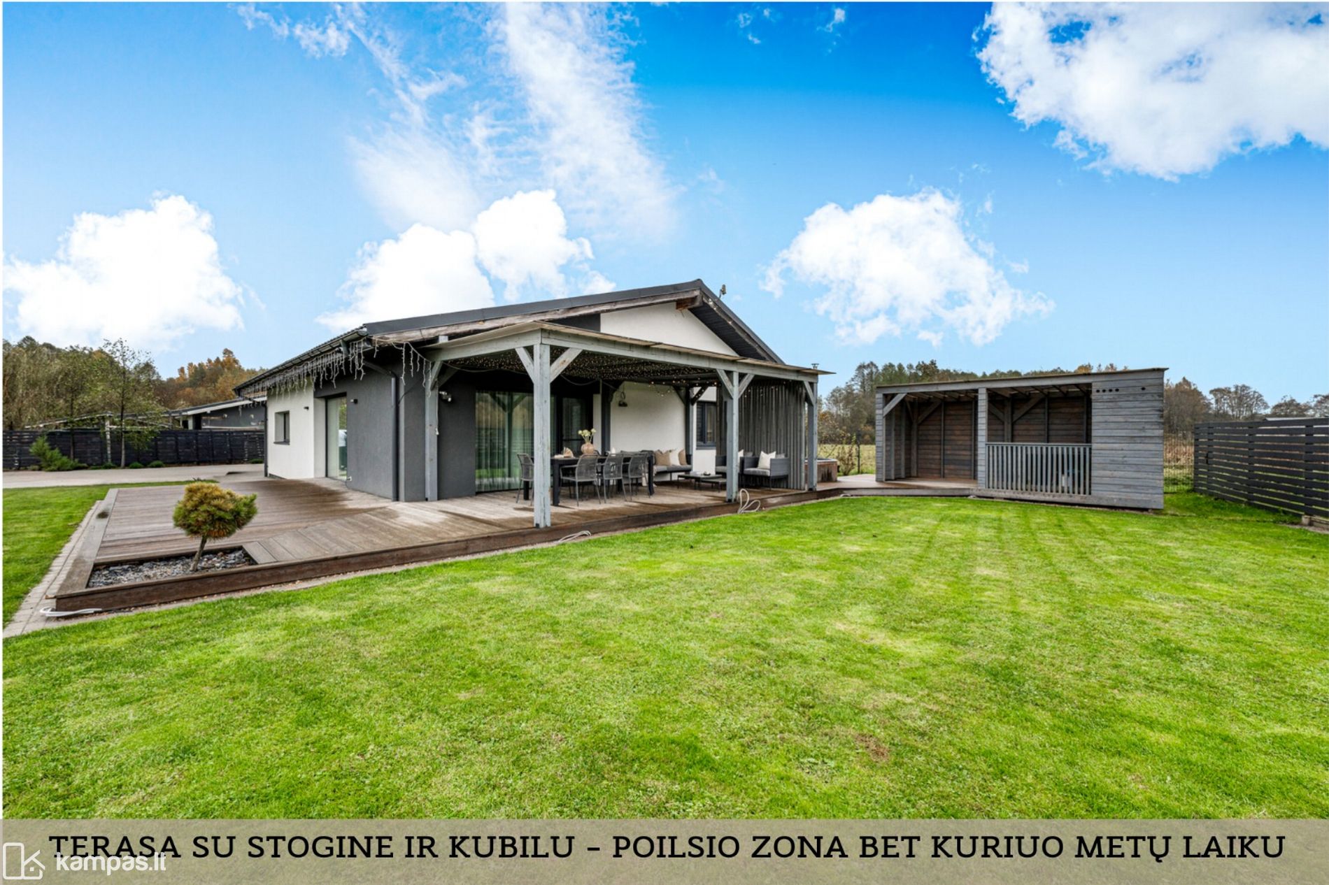 - Erdvi terasa su stogine ir kubilu;