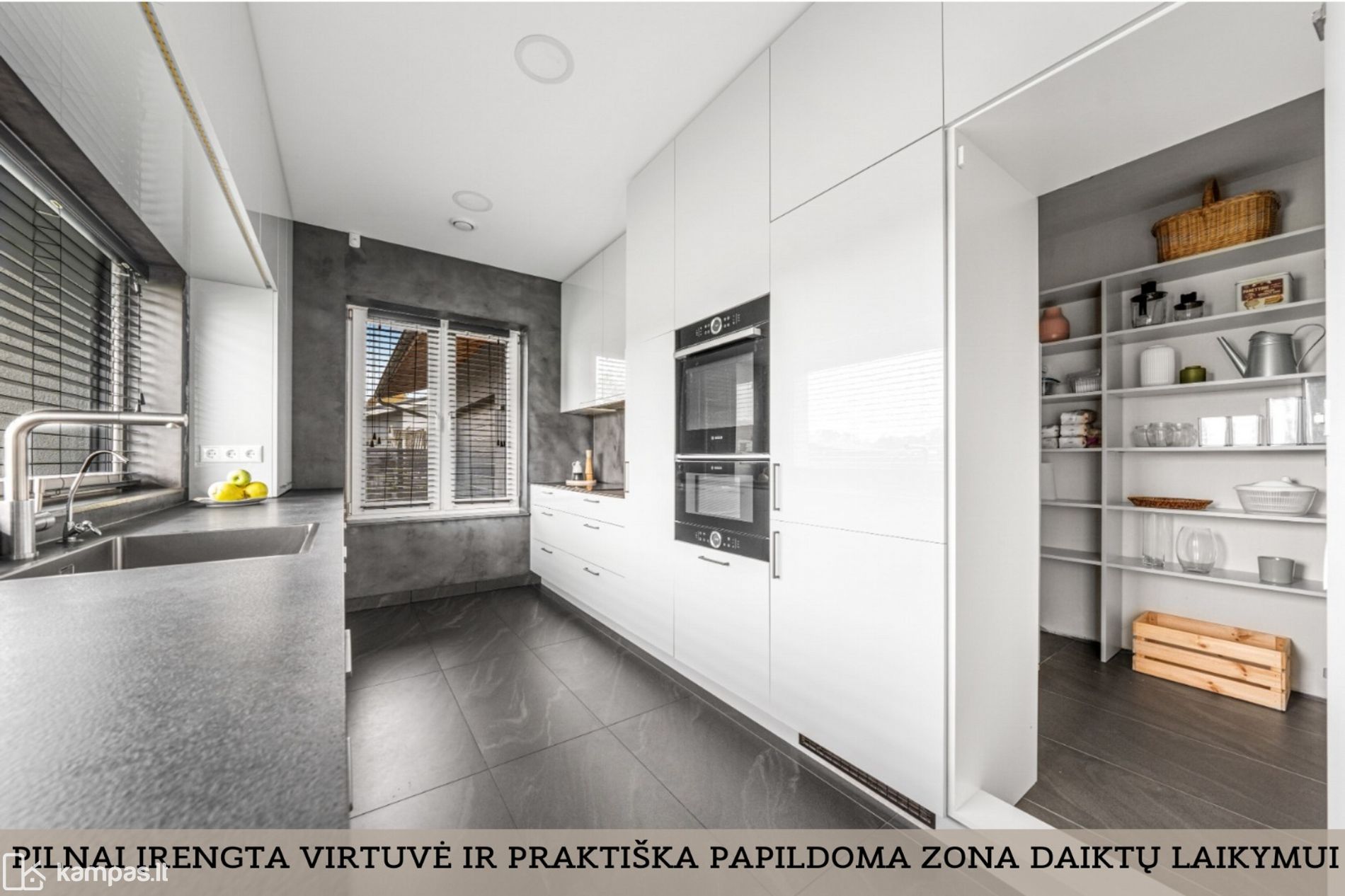 - Virtuvėje – Bosch buitinė technika: kaitlentė, orkaitė, integruota mikrobangų krosnelė, indaplovė, gartraukis;