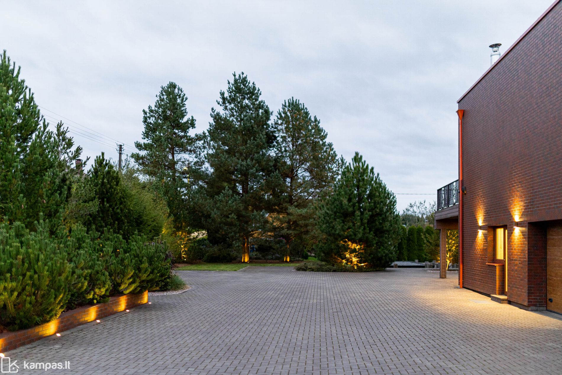 - visa teritorija prabangiai sutvarkyta: kieme didelis plotas išklotas klinkerinėmis trinkelėmis, teritorija aptverta ranku darbo pilnavidurio metalo tvora, įrengti automatiniai vartai, pasodinti brandūs spigliuočiai medžiai, įrengta laistymo sistema ir automatinis visos teritorijos apšvietimas;