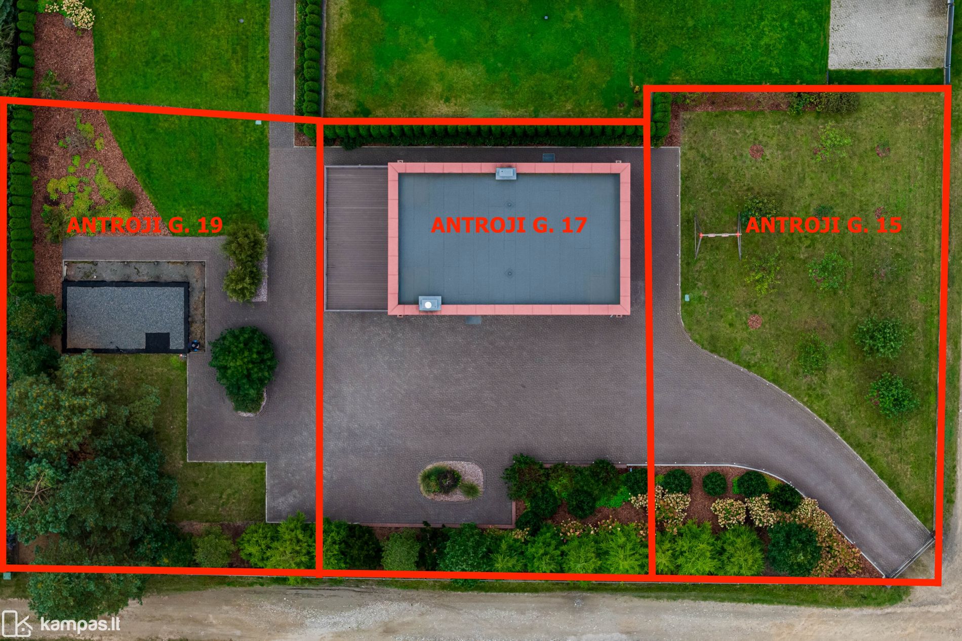 - namas parduodamas kartu su 3 atskirais sklypais po 6 arus (Antroji g. 15, Antroji g. 17, Antroji g. 19), viso gaunasi gana taisiklingos formos vienas sklypas kurio bendras plotas 18 a. (~ 60*30 m);