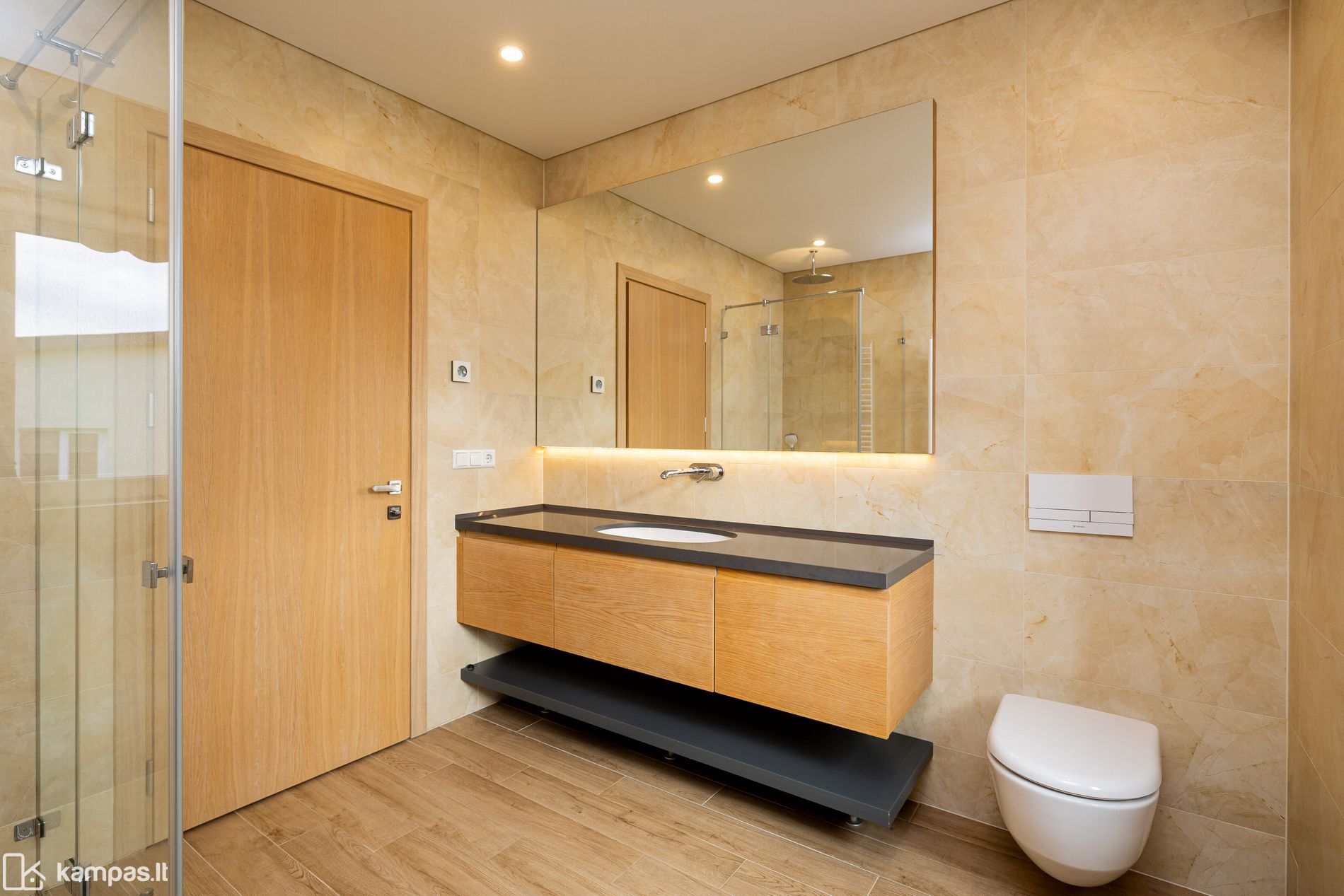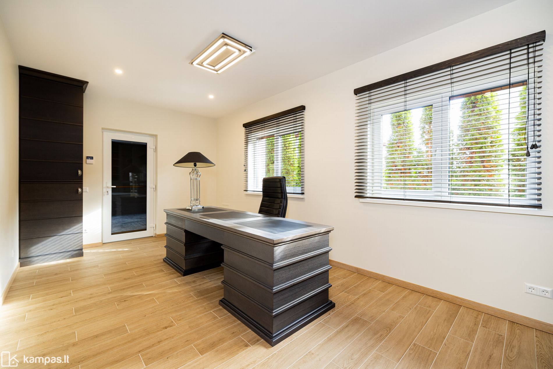 - namo 1 aukšte prabangiai įrengtas darbo kambarys, laiptinė, tambūras, drabužinė, WC kambarys ir labai erdvus net 55 kv.m. garažas (3 automobiliams);