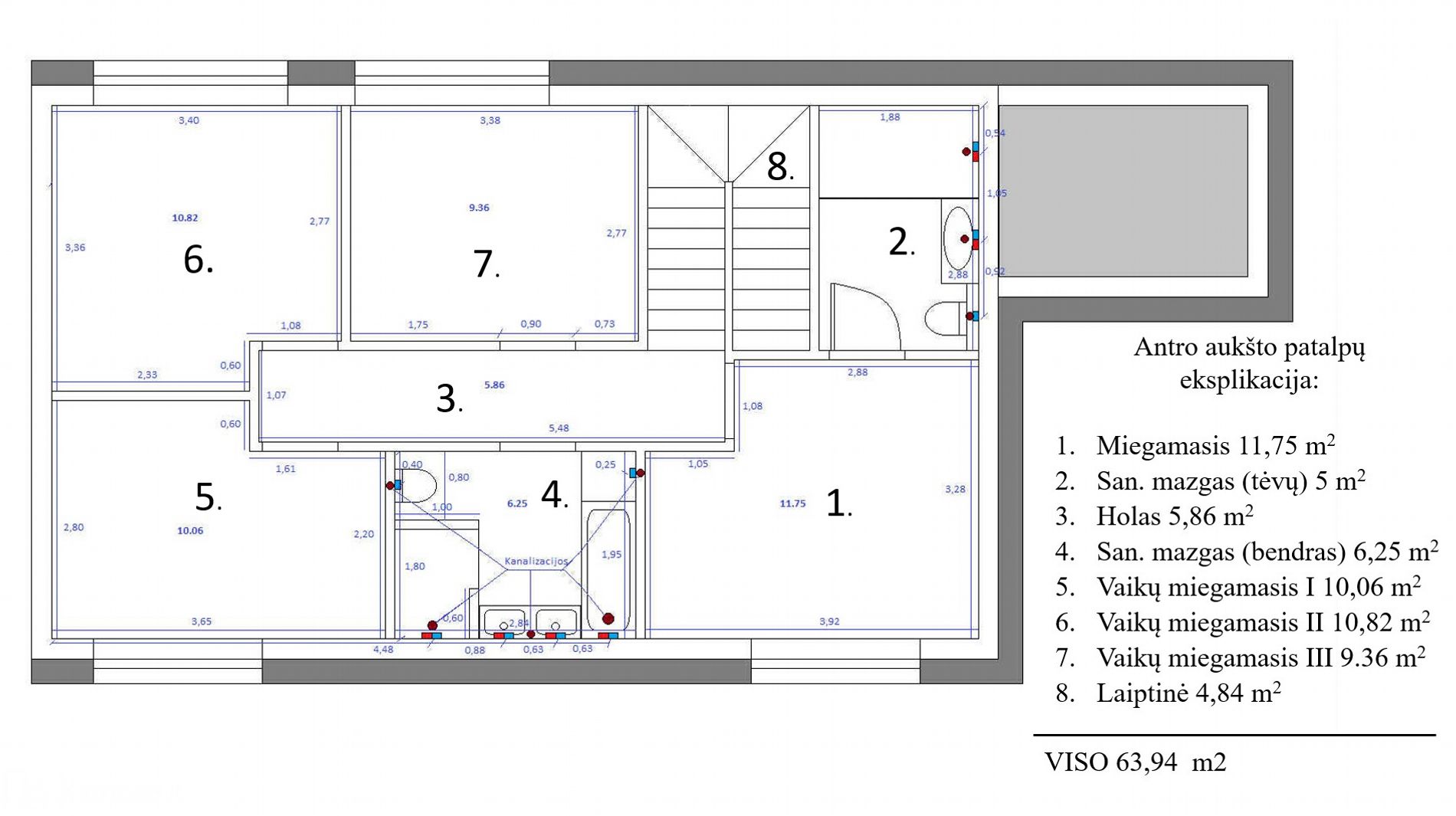 RACIONALUS BEI PATOGUS IŠPLANAVIMAS – trys atskiri san. mazgai, darbo kambarys, 3 miegamieji, erdvi svetainė ir netgi pirtis;