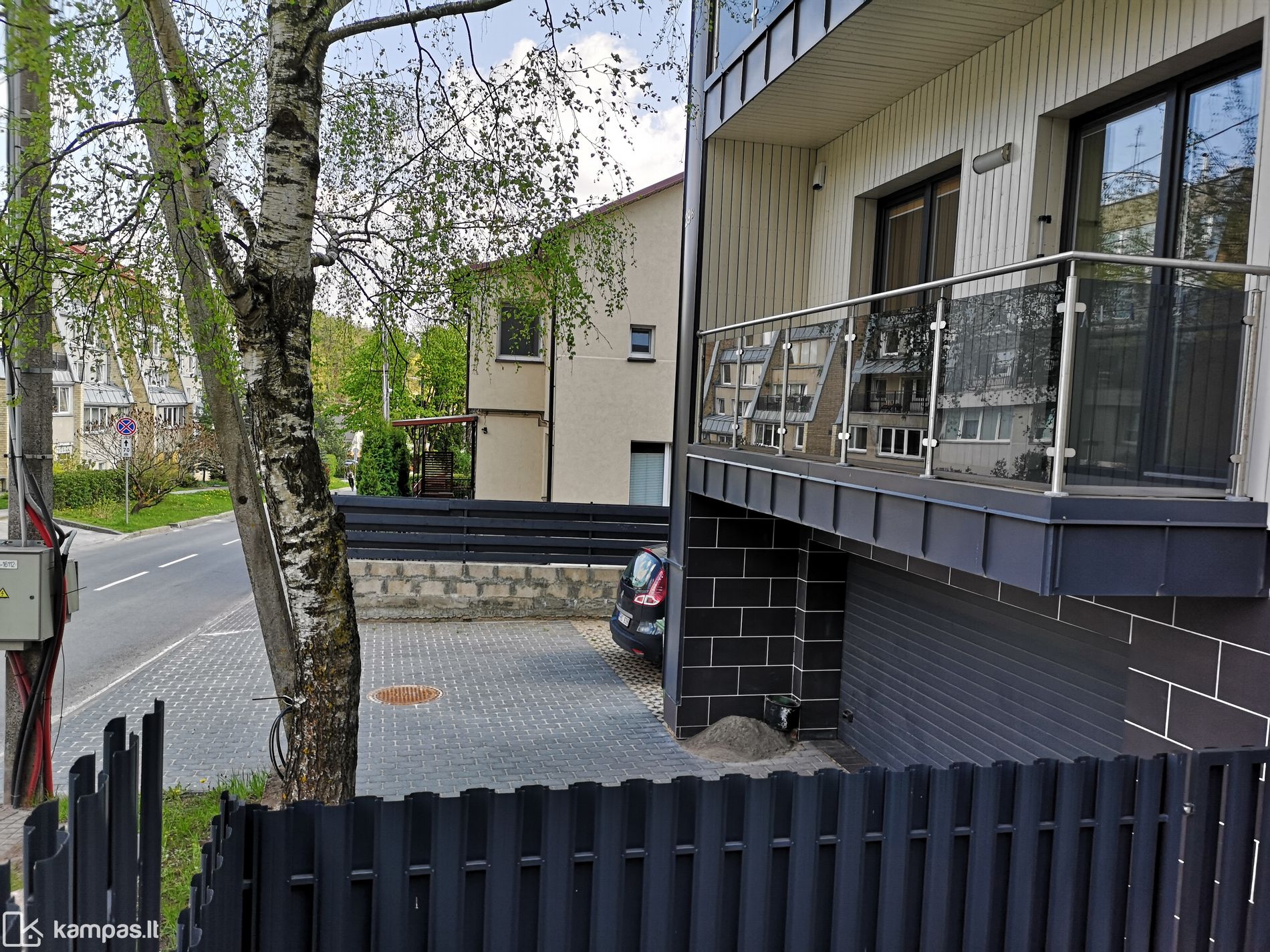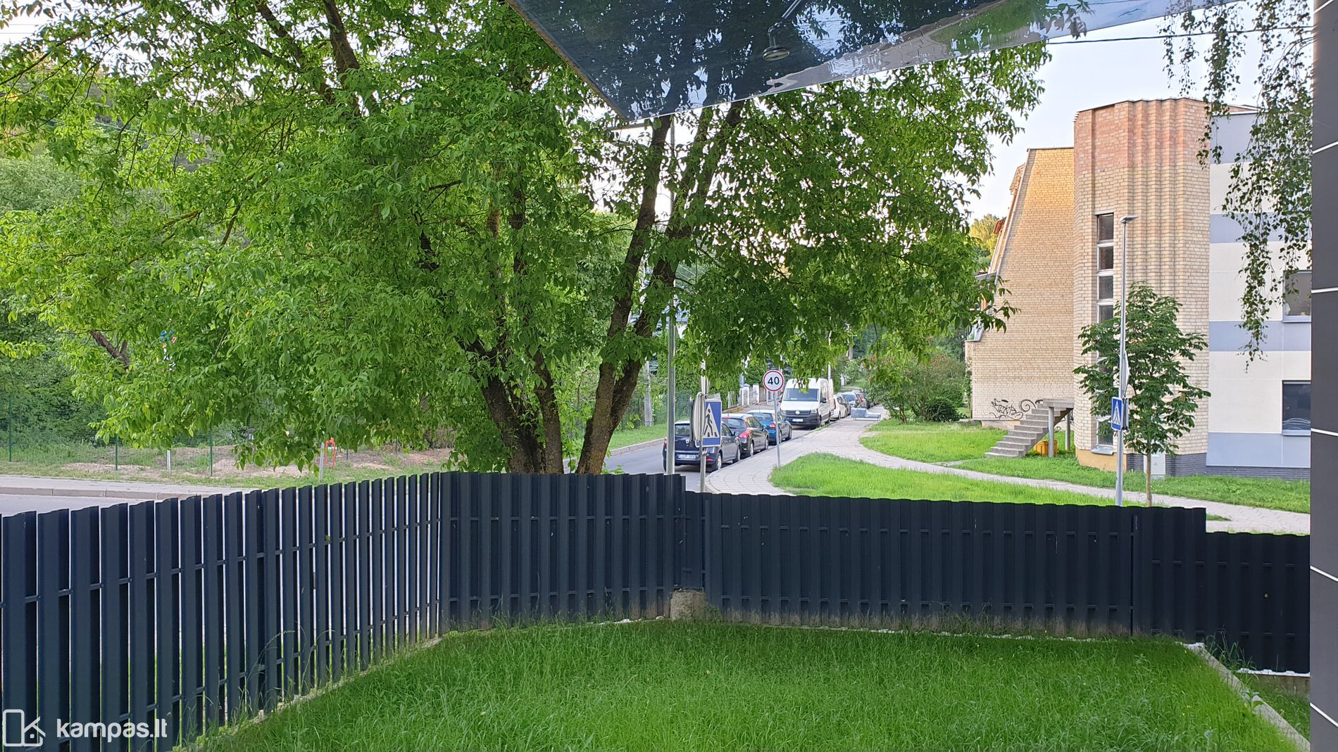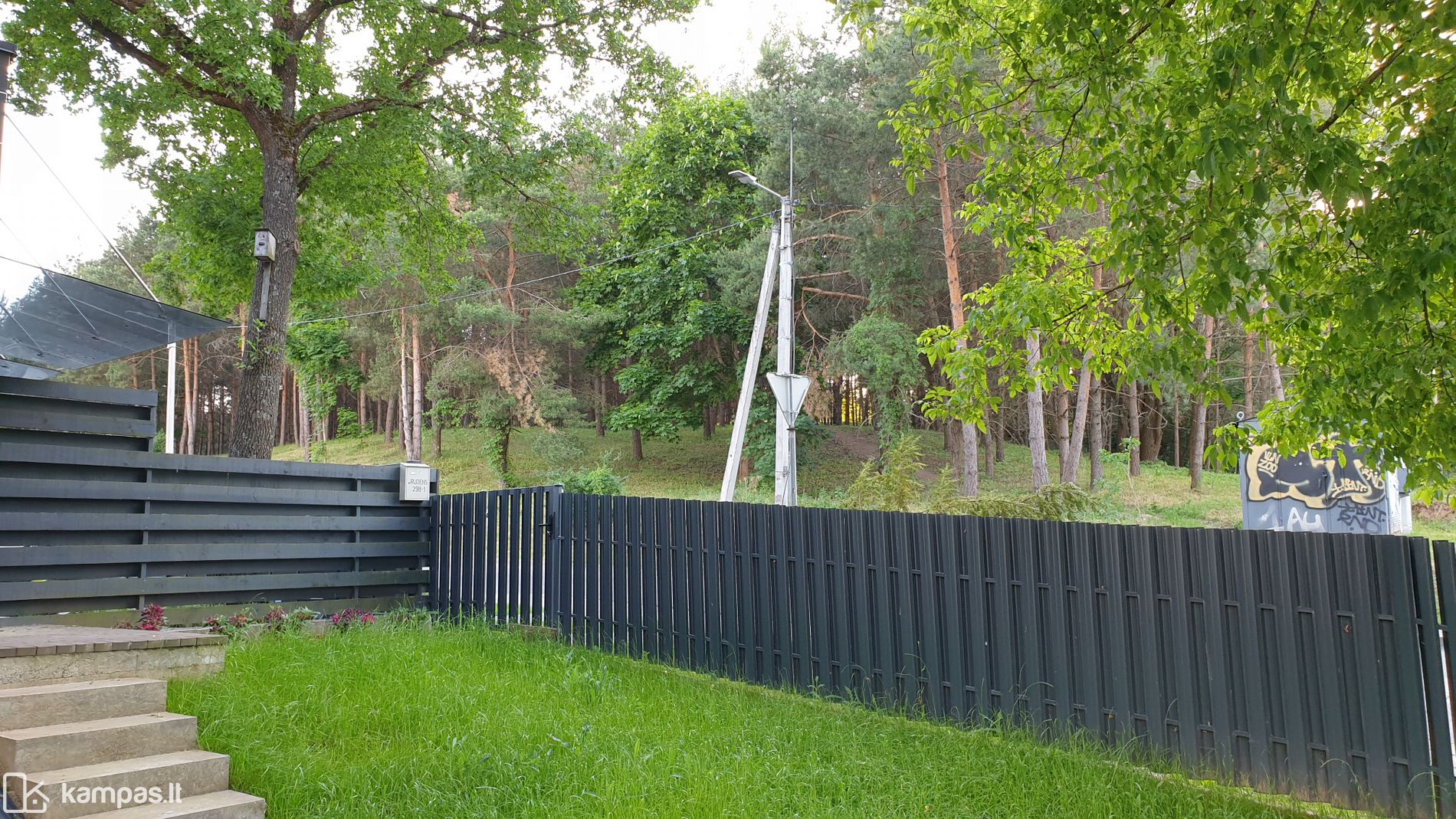 Dalis sklypo su žolės paklotu aptverta, kita dalis prie garažo išklota trinkelėm. Čia galimybė parkuoti iki keturių automobilių.