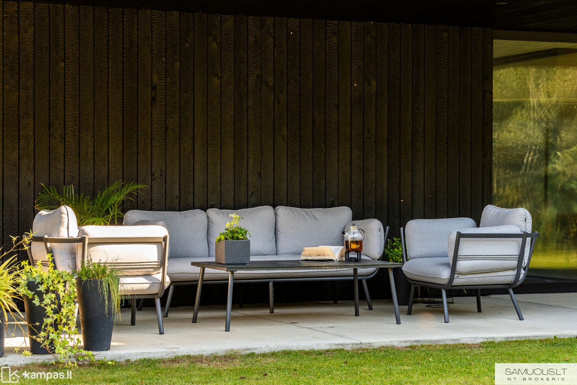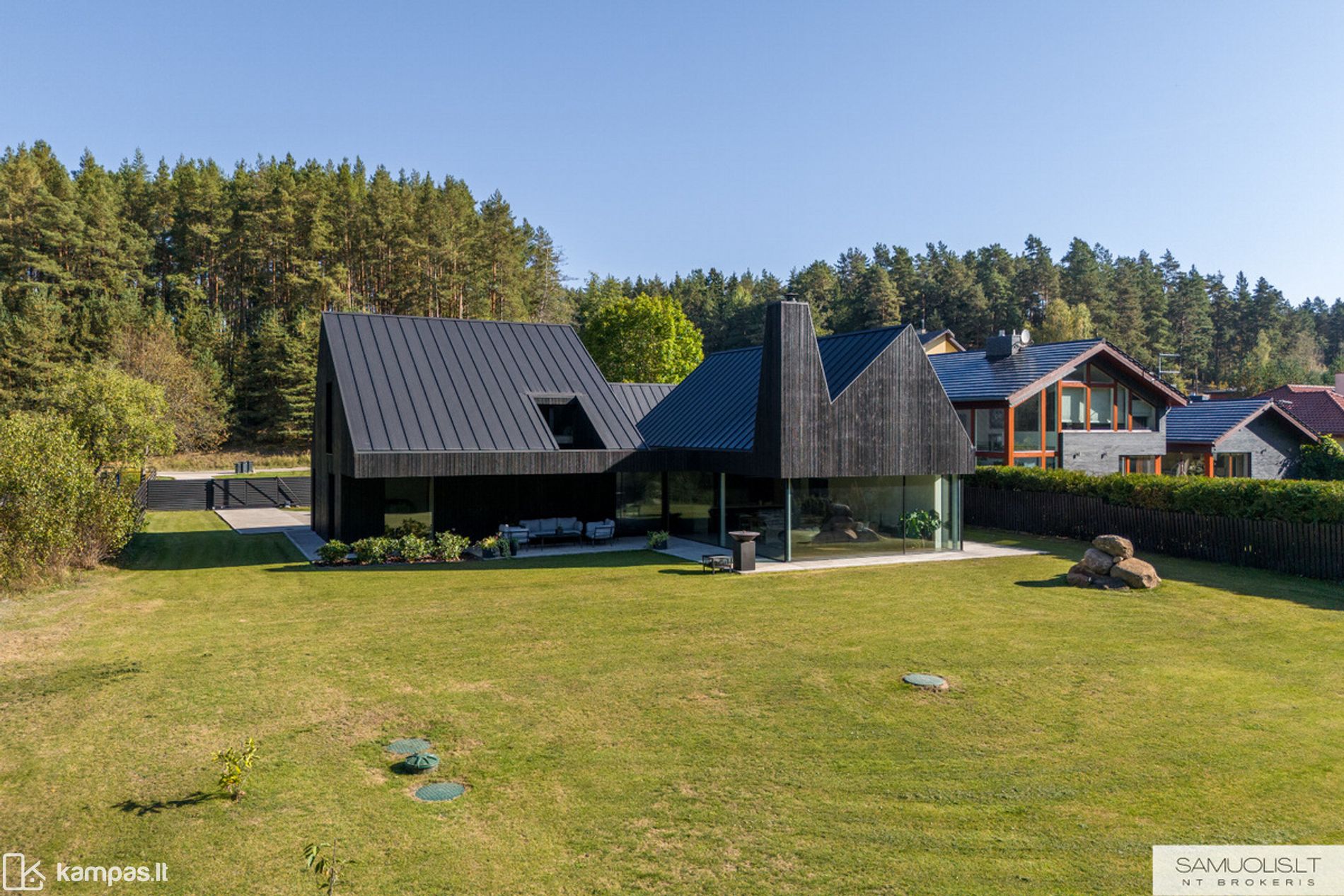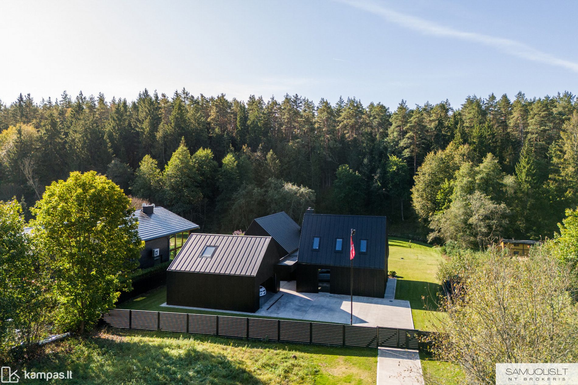 • Aptverta teritorija - nuo gatvės pusės metalo profilių tvora, nuo kaimynų gyvatvorė, nuotoliu valdomi automatiniai vartai;