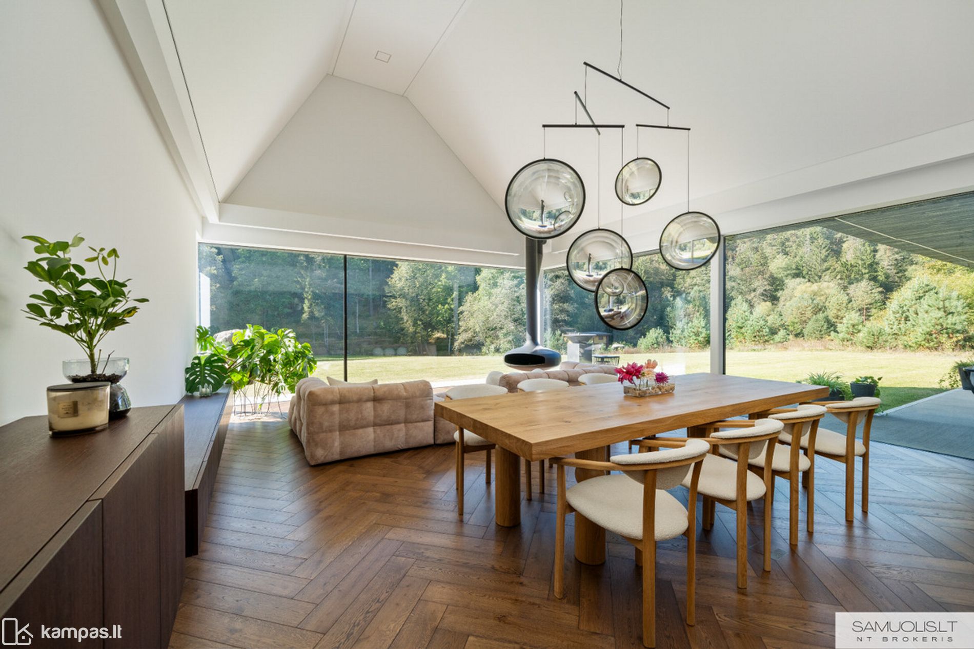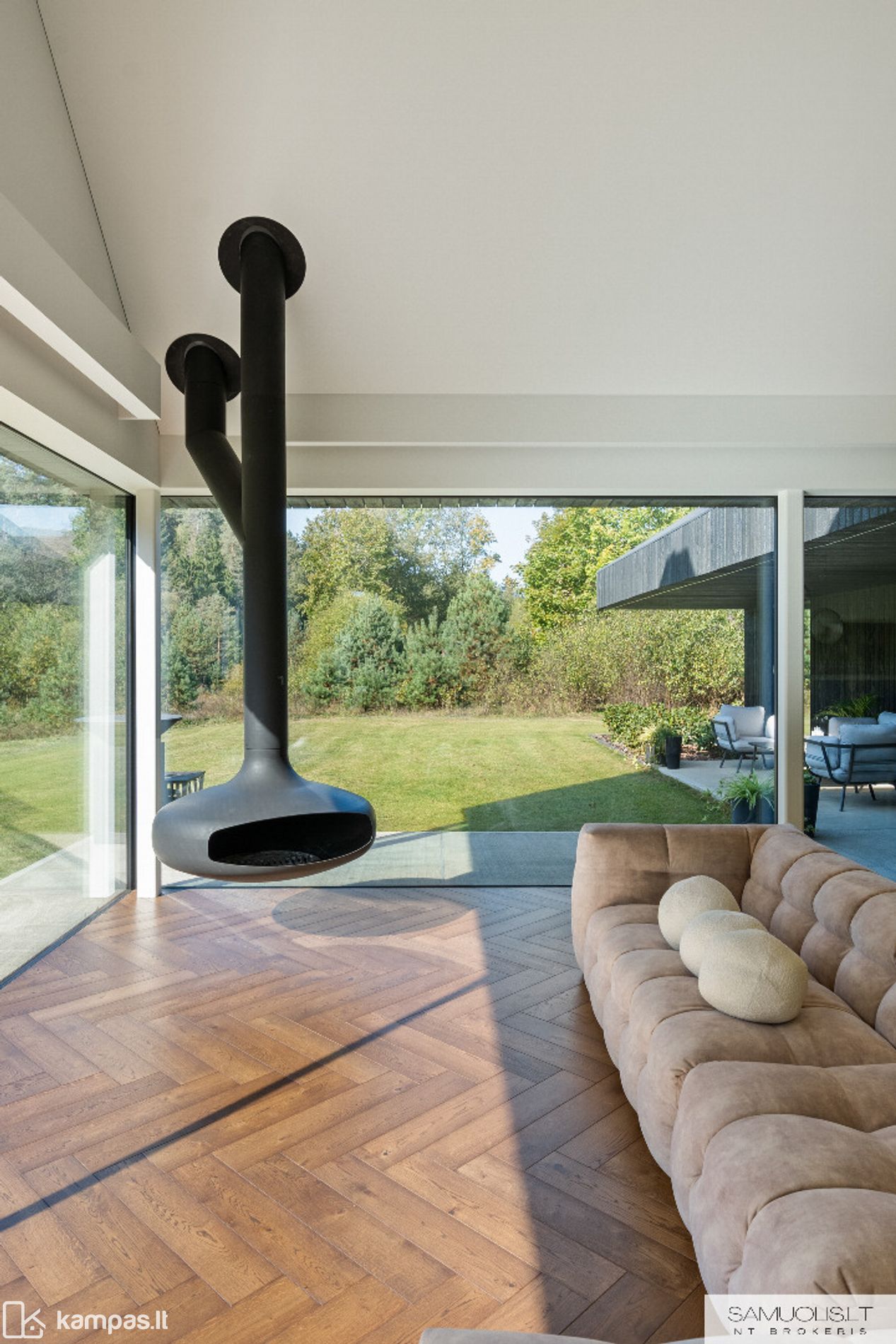 • Prancūziškas pakabinamas židinys svetainėje;