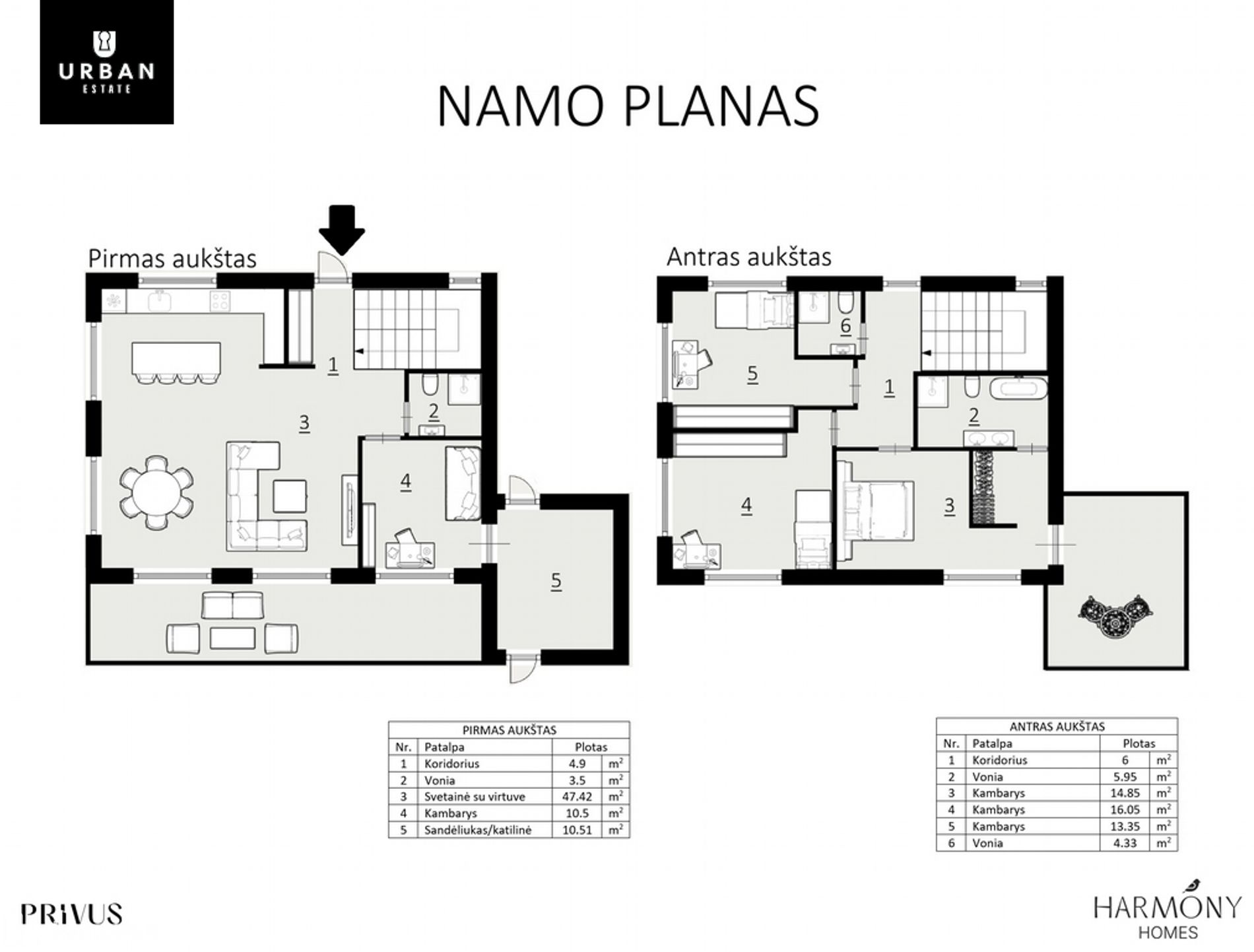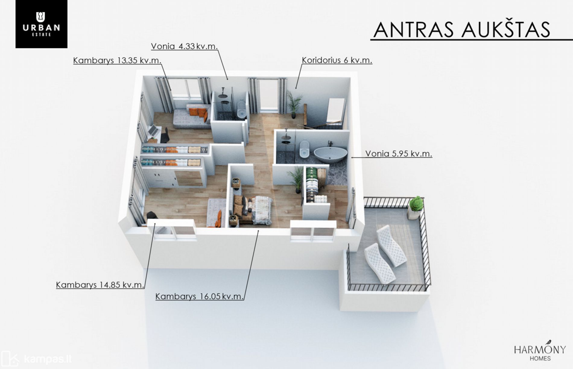 - Namai suprojektuoti itin erdviai, siekiant užtikrinti kiekvieno privatumą bei poilsį.