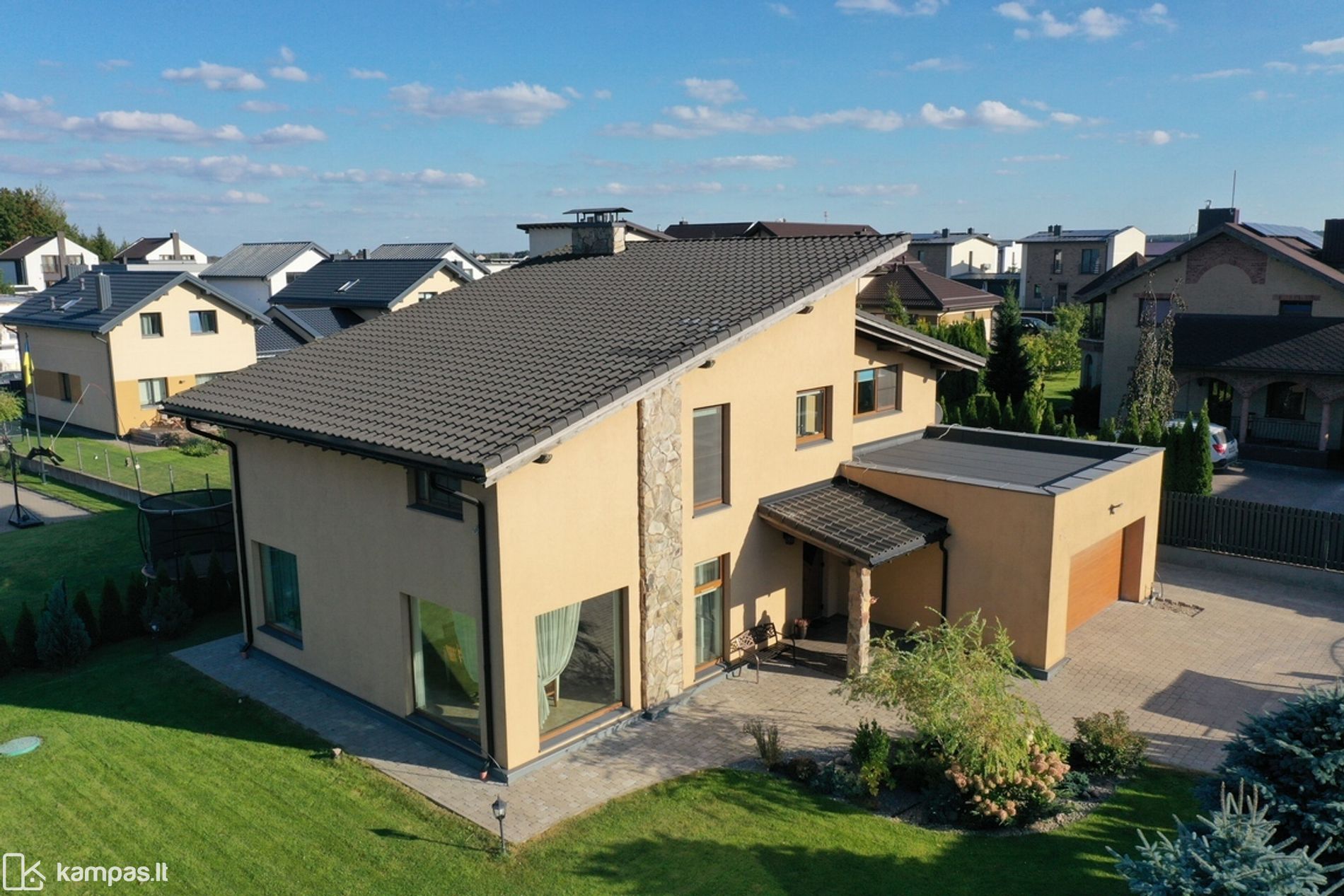 - 220 m² naudingo ploto + 34 m² garažas dviems automobiliams.