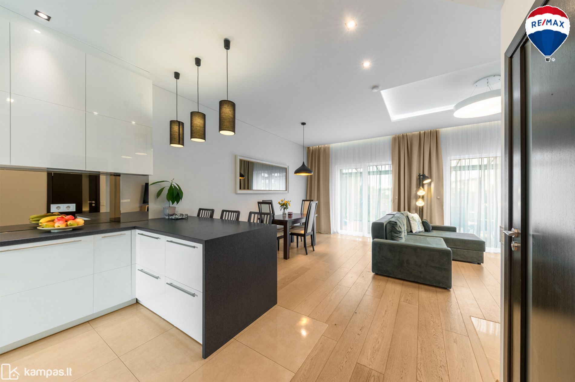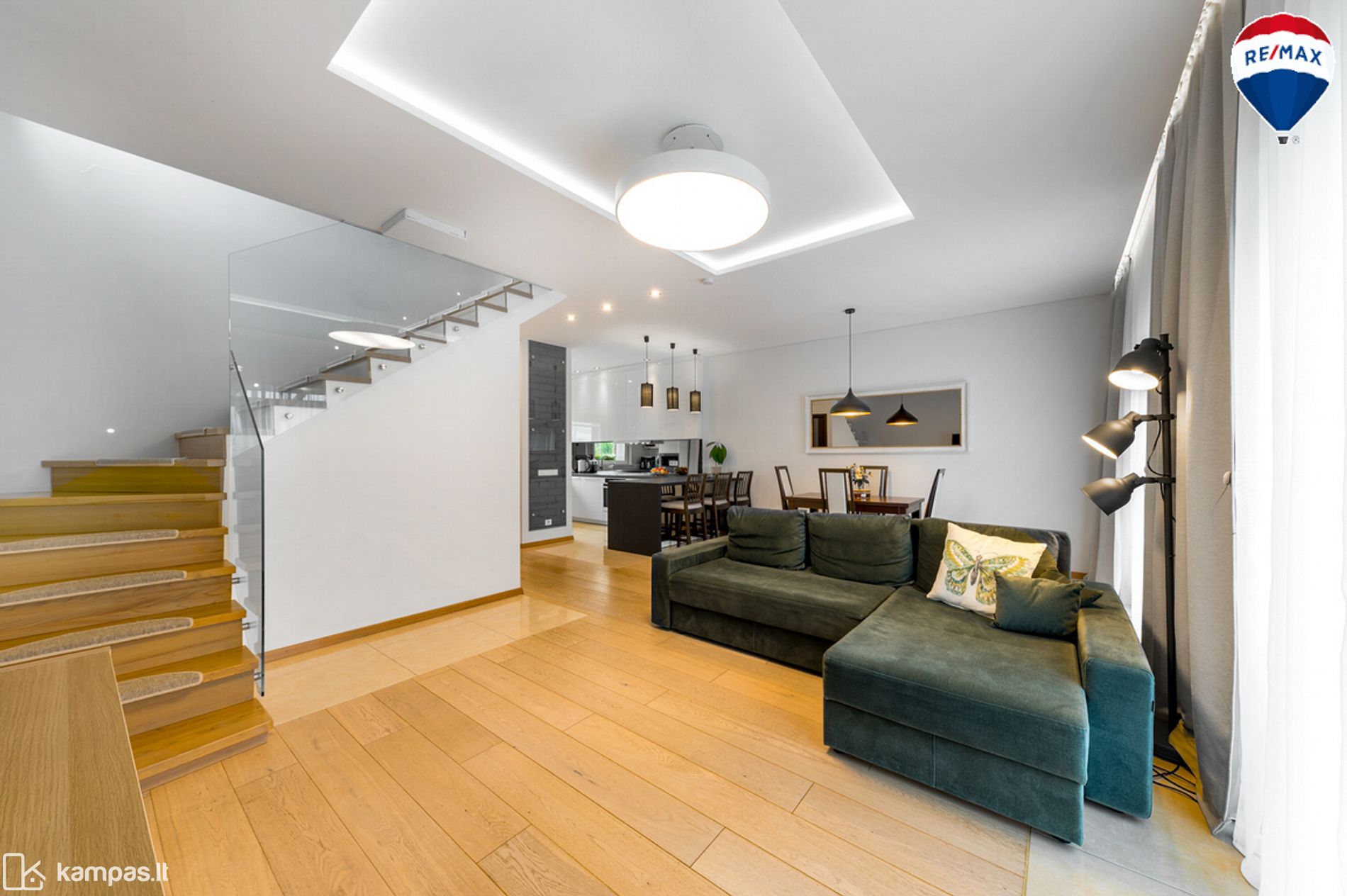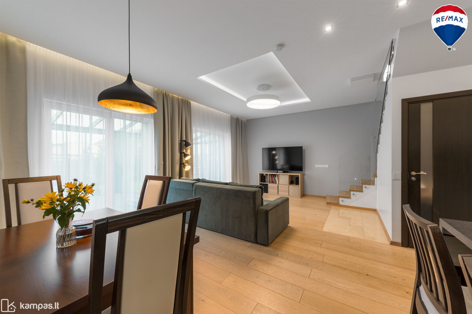 - Svetainė, sujungta su virtuve ir valgomuoju;