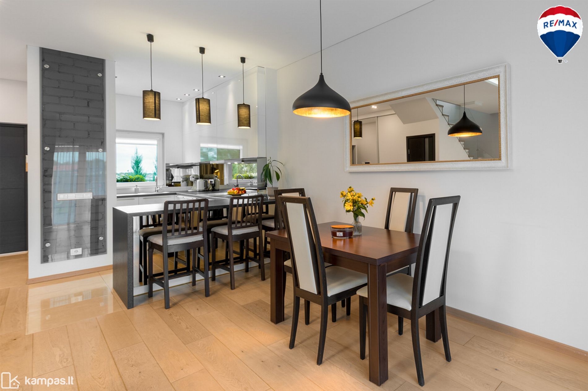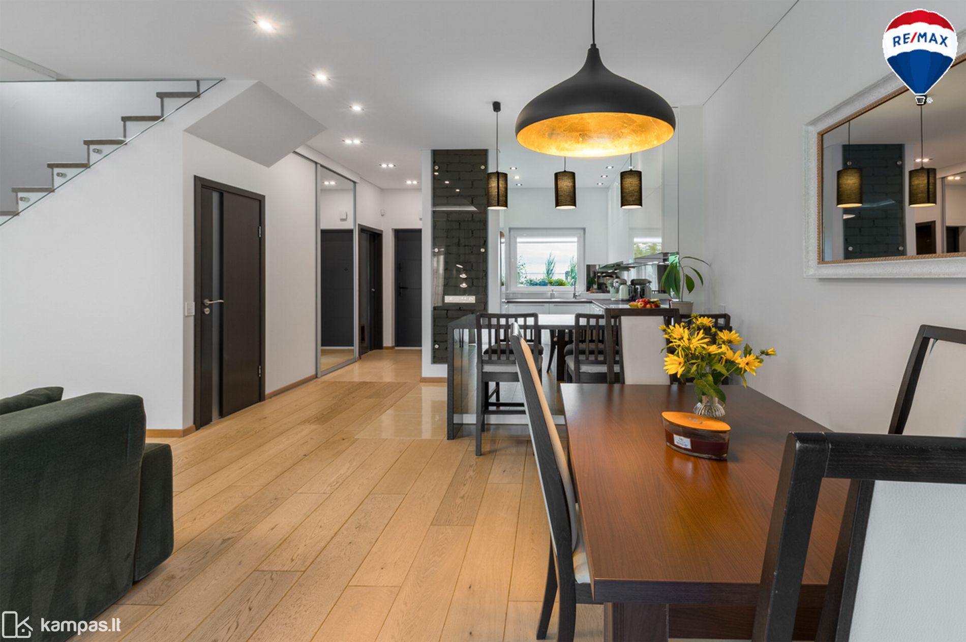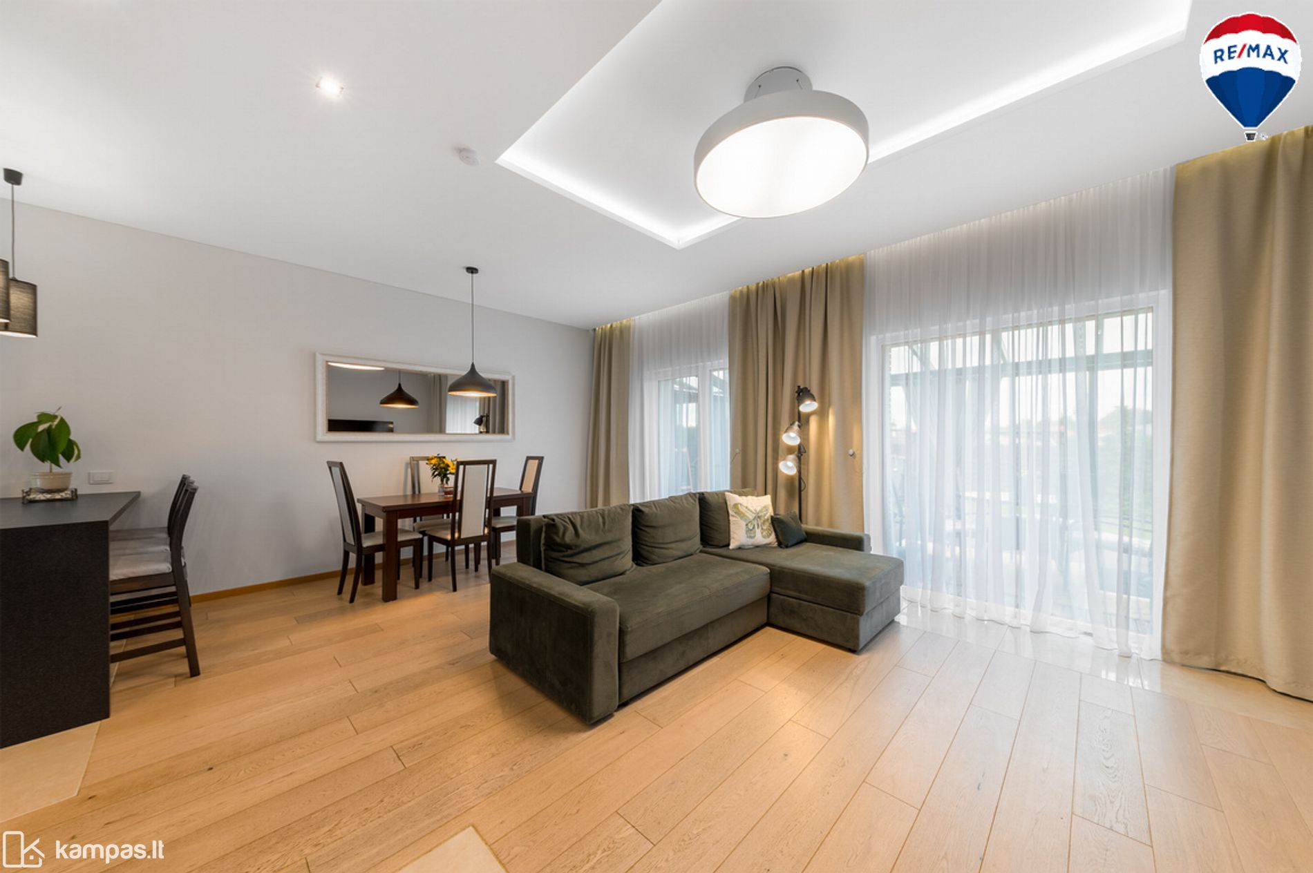 - Svetainė, sujungta su virtuve ir valgomuoju;