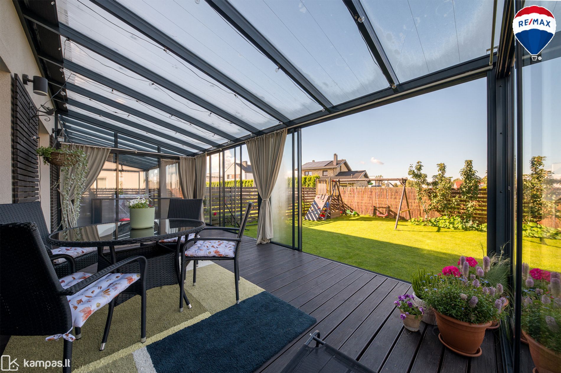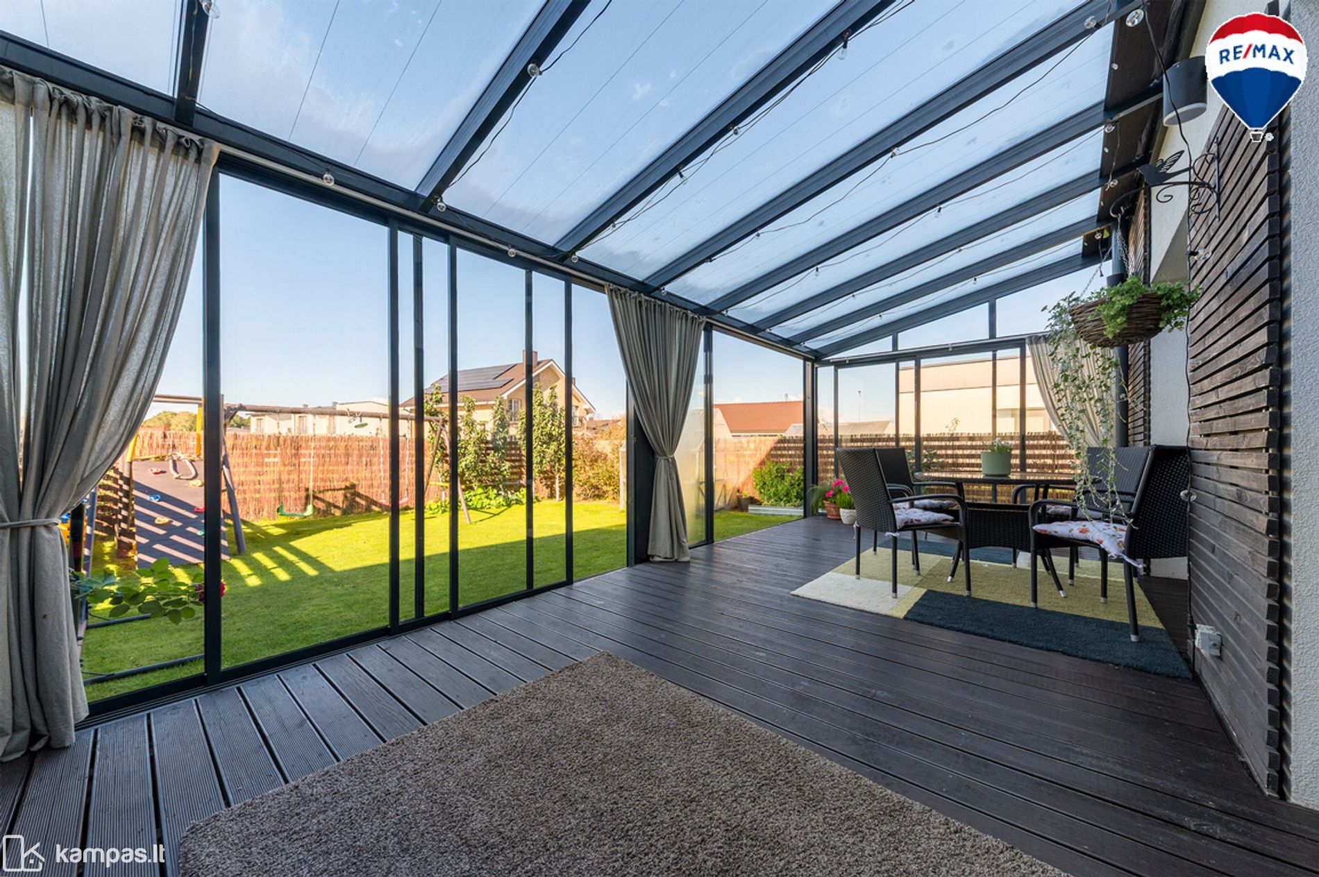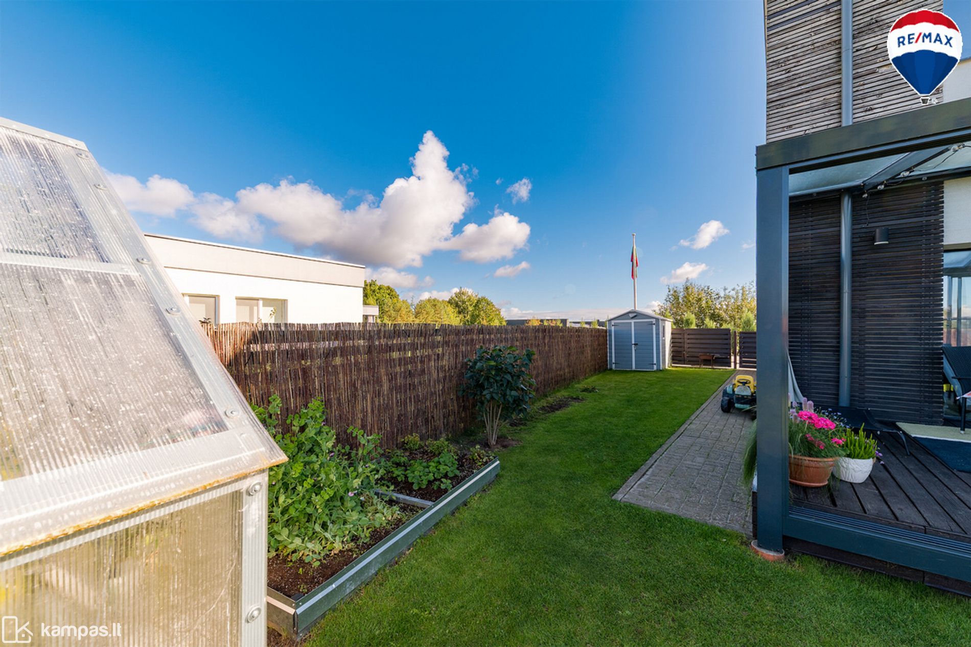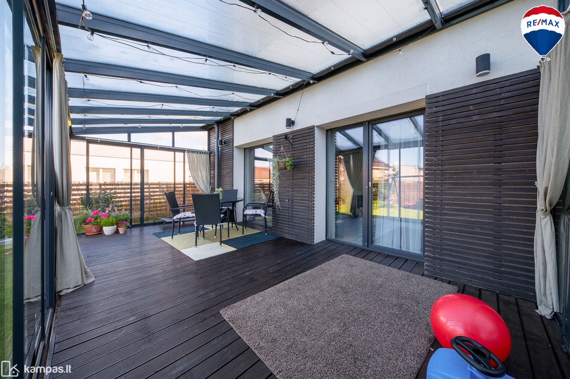 - Į vakarus orientuotas kiemas su erdvia (22 kv. m.) medine terasa – vakarus lydės gražus saulėlydis;