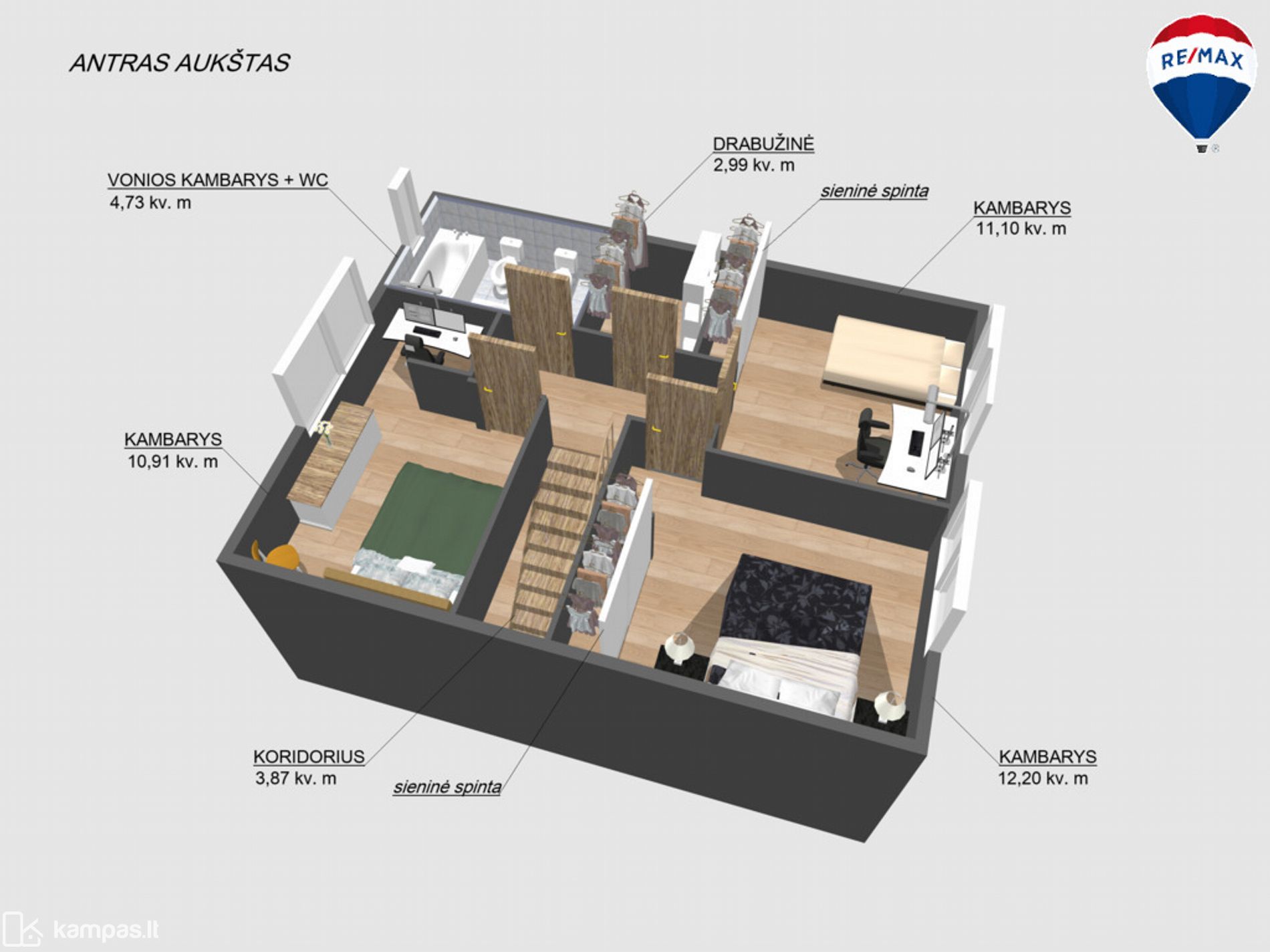 - Kambarių skaičius – 4;