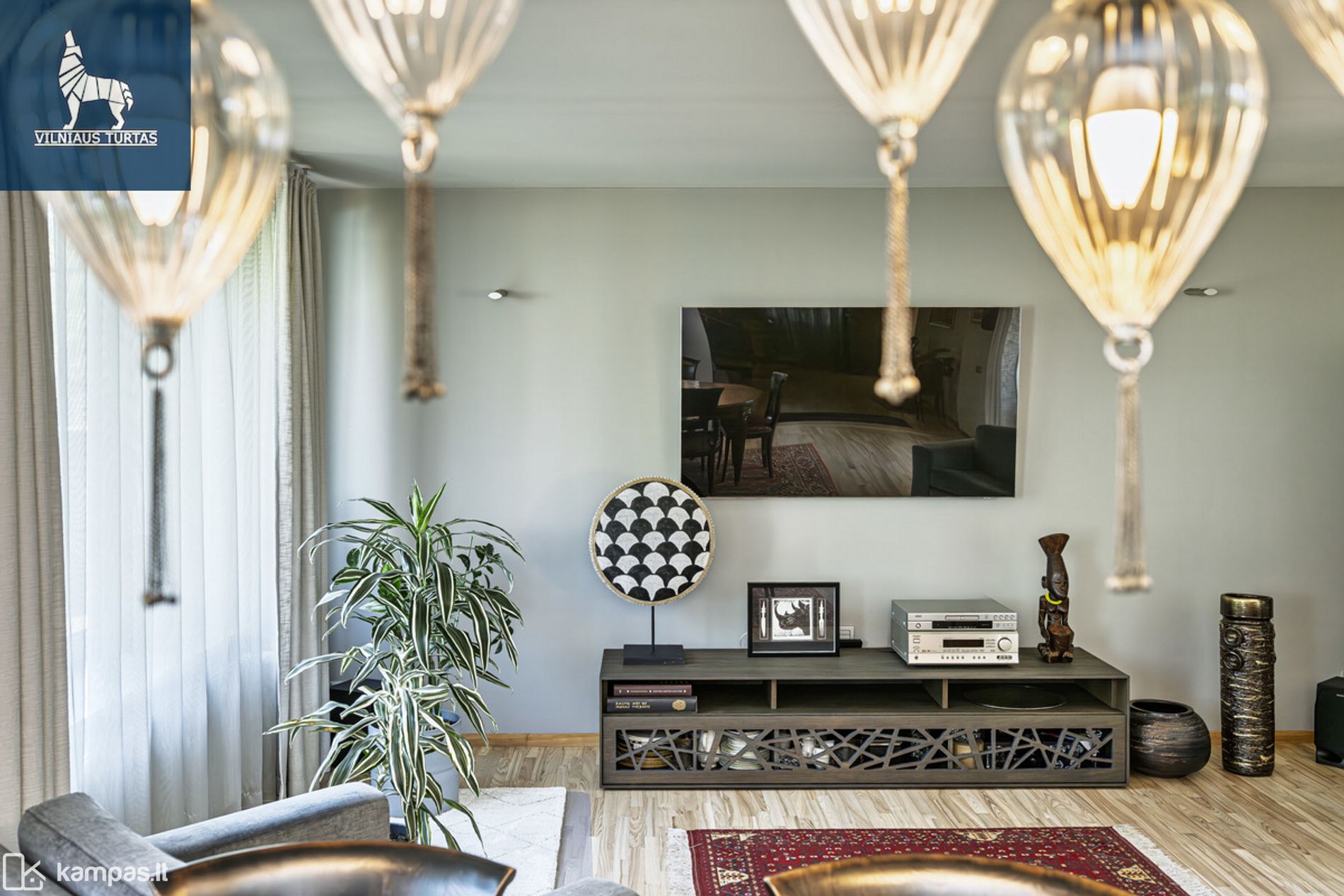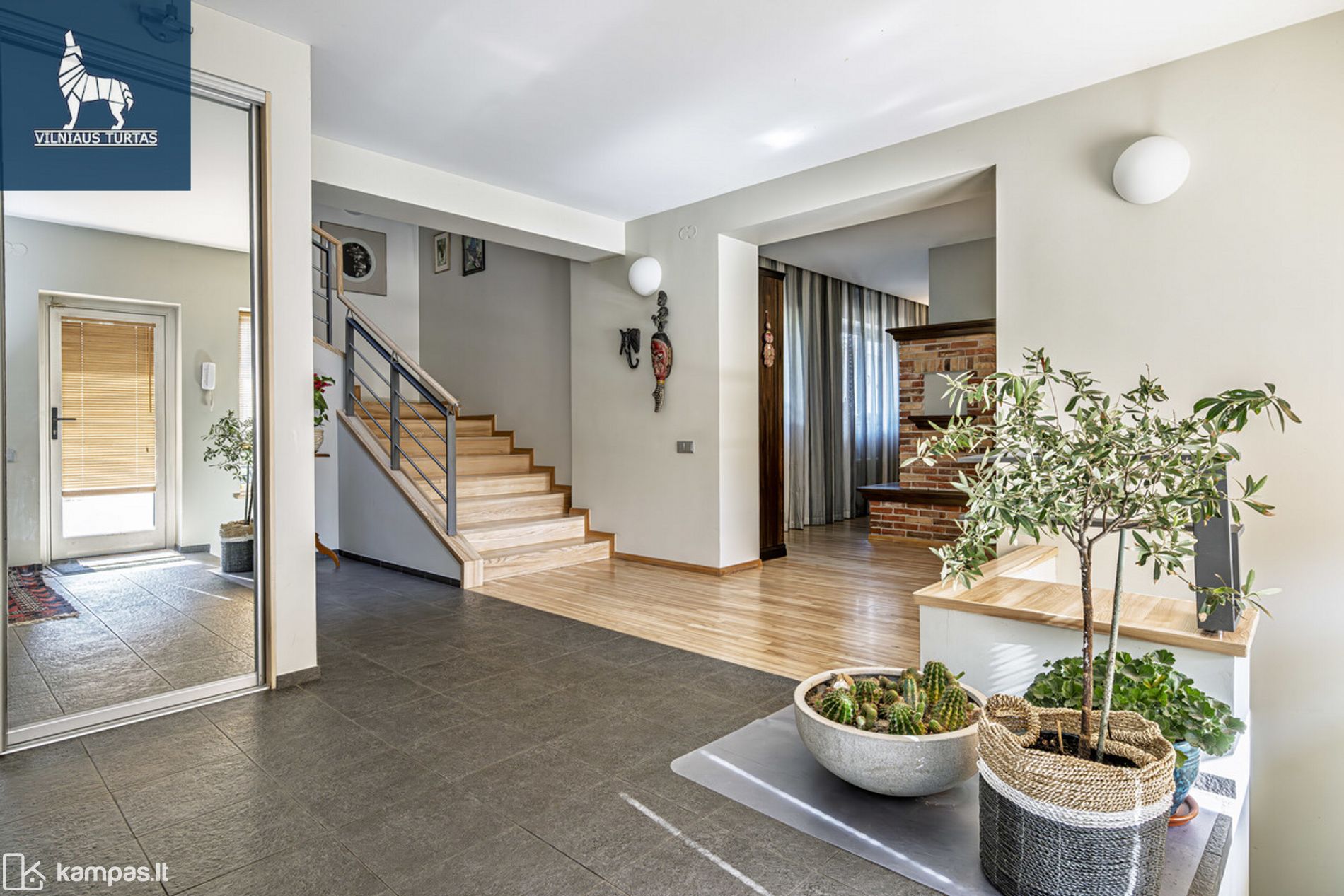 Pirmame aukšte įrengta erdvi svetainė su židiniu, atskira virtuvė, patogi sandėliavimo patalpa ir vonios kambarys. Antrajame aukšte du miegamieji su privačiomis drabužinėmis, erdvus vonios kambarys su jacuzzi. Vienas miegamasis turi tiesioginį išėjimą į didelę terasą, kurioje ryto kava gryname ore gali tapti ypatingu kas rytiniu ritualu, kitas miegamasis taip pat turi balkoną. Trečiajame aukšte įsikūręs šviesus darbo kambarys su balkonu ir atsiveriančiu nuostabiu vaizdu į tvenkinį. Rūsyje yra garažas, o poilsiui ir atokvėpiui po dienos darbų įrengta puiki sauna bei erdvi poilsio zona.