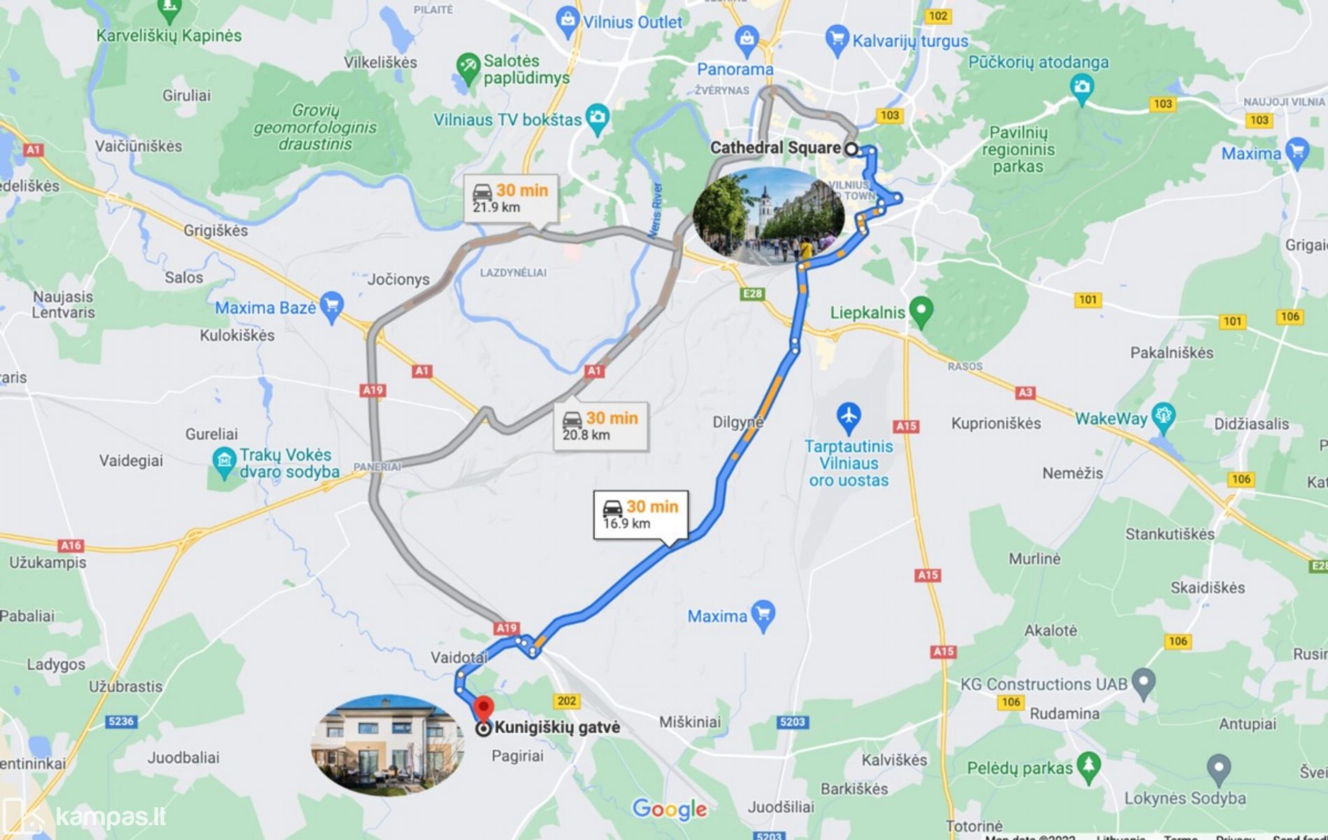 - 20 min automobiliu/15 km iki Vilniaus miesto centro;