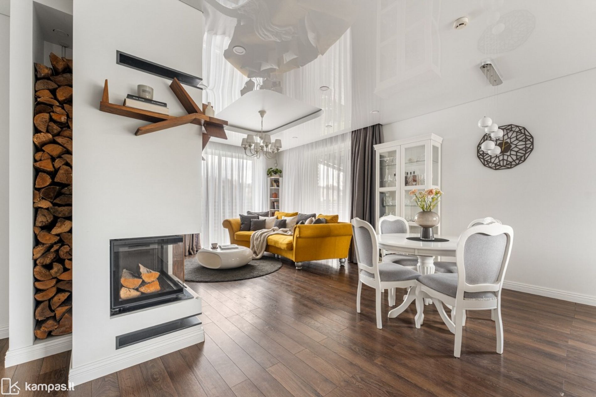 • Name įrengtas jaukus židinys, kuris suteikia ne tik šilumą, bet ir kuria išskirtinę namų atmosferą – ideali vieta jaukiems vakarams su šeima ar draugais;