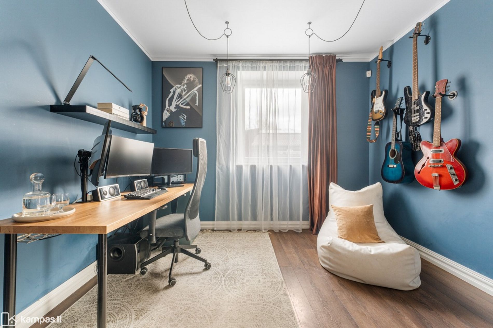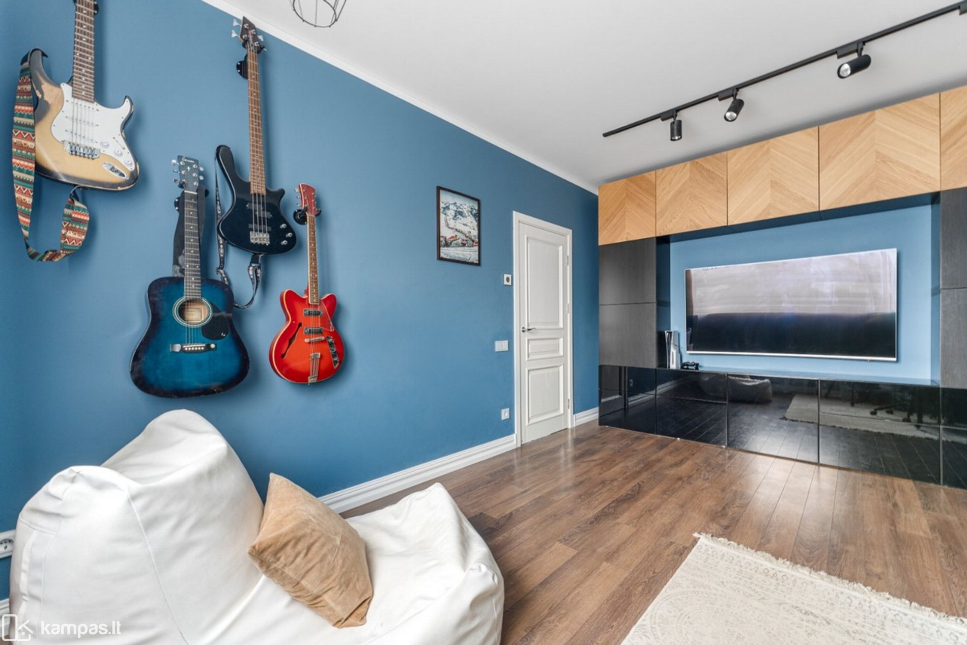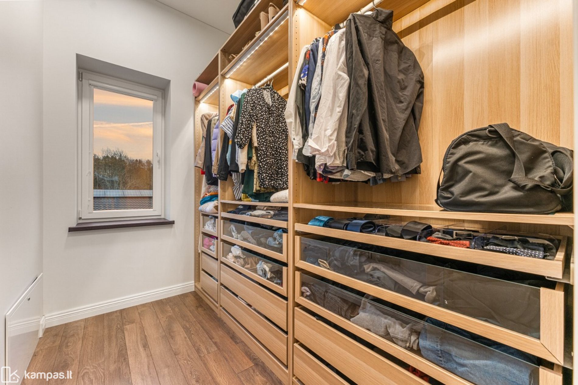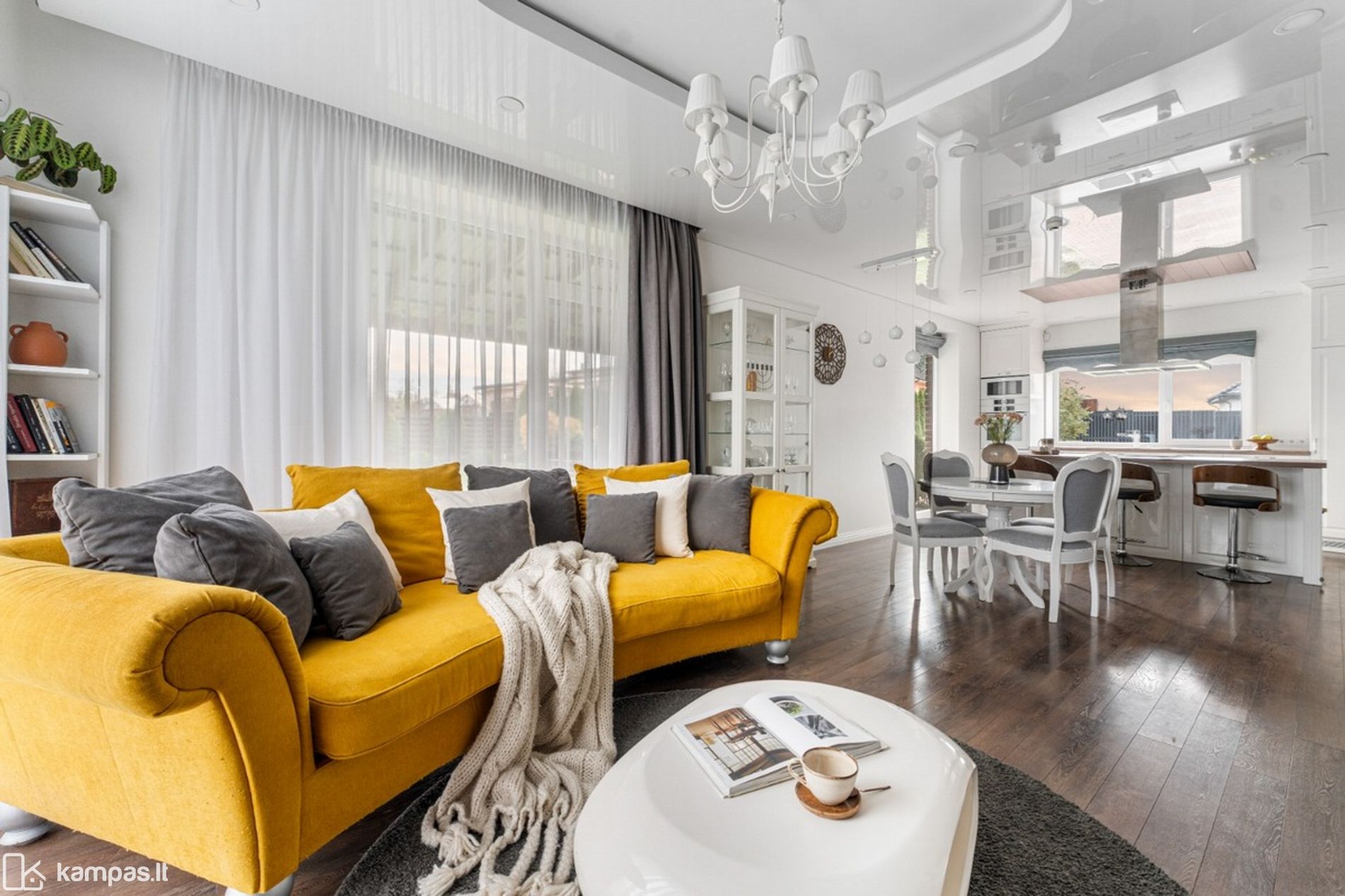 • Kambarių skaičius: 5 (pirmame aukšte: svetainės, valgomojo ir virtuvės zona, darbo kambarys; antrame aukšte: 3 kambariai, drabužinė);