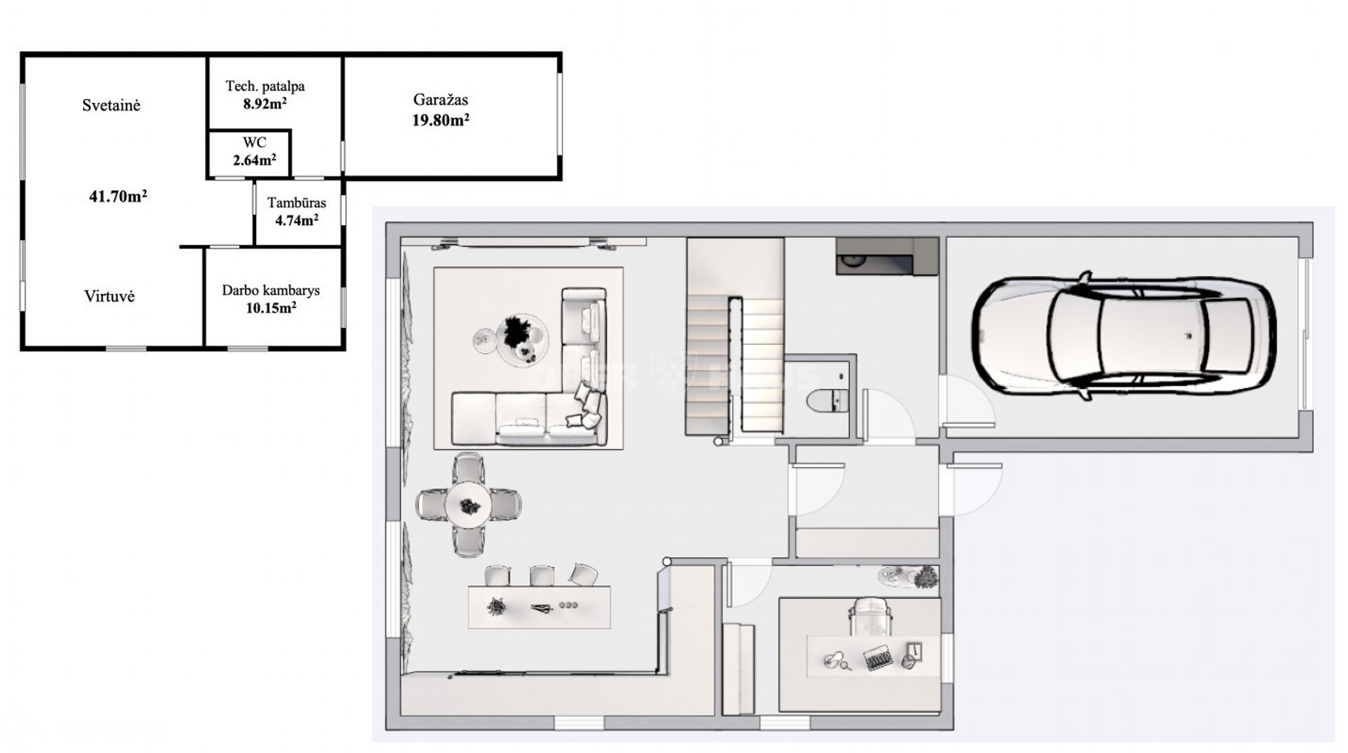 • Darbo kambarys – puikiai tinkantis nuotoliniam darbui ar svečių priėmimui