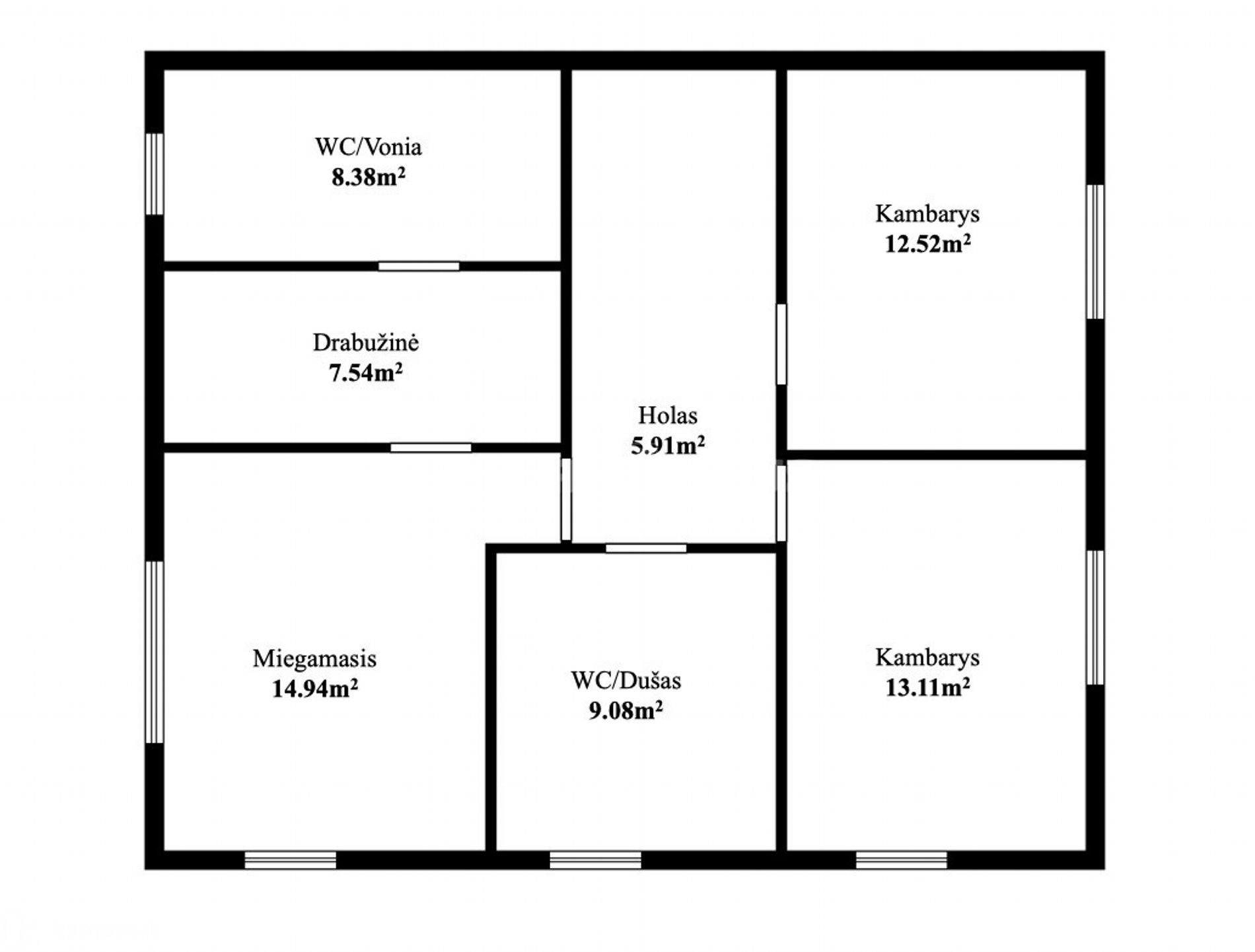 • Šildymas: išvedžiotas grindinis šildymas (oras–vanduo), reguliuojamas kiekviename kambaryje