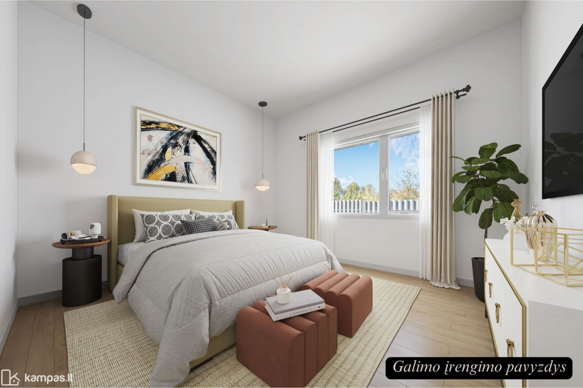 - Kambarių skaičius: 4 (svetainė sujungta su virtuve, 3 miegamieji kambariai);