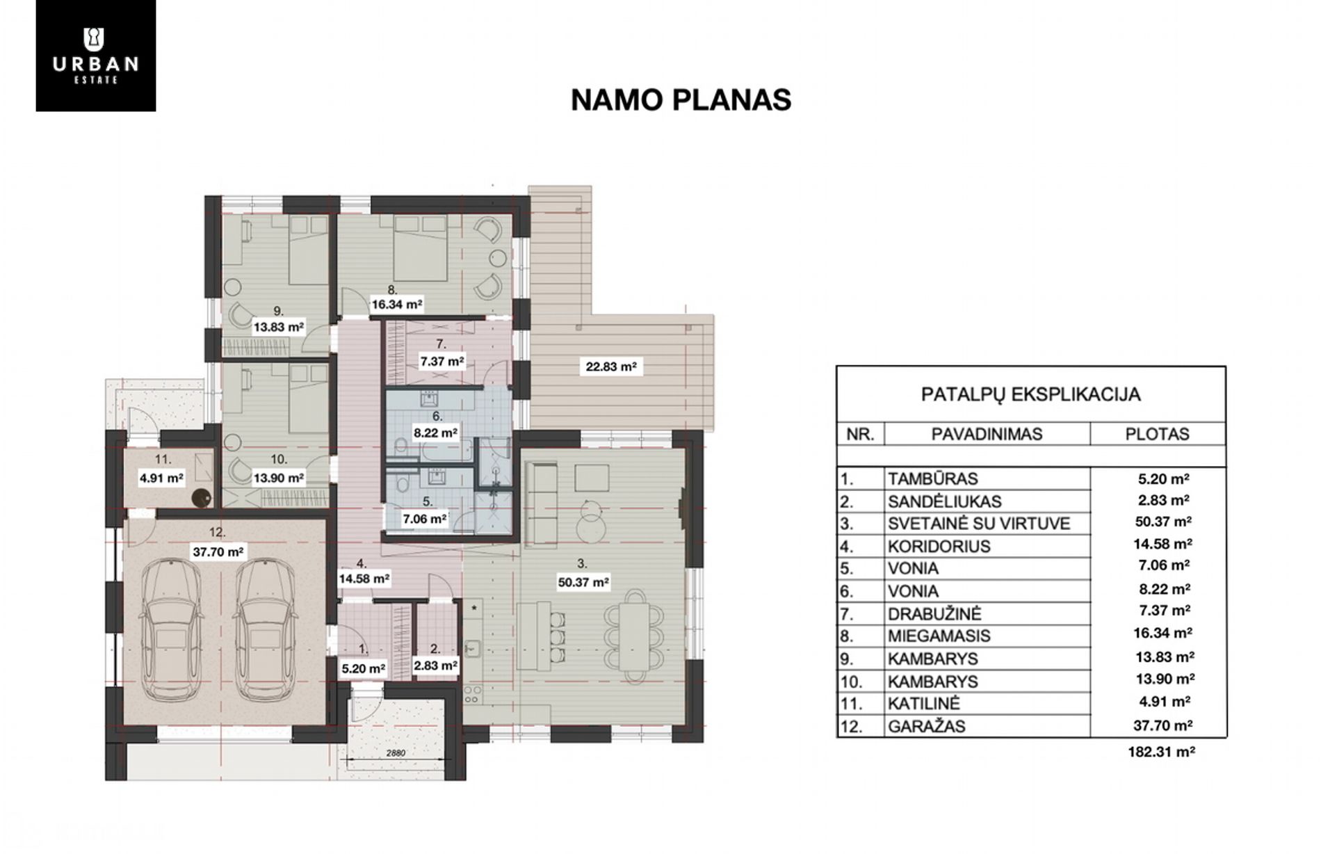 • Bendras namo plotas 182,31 m².