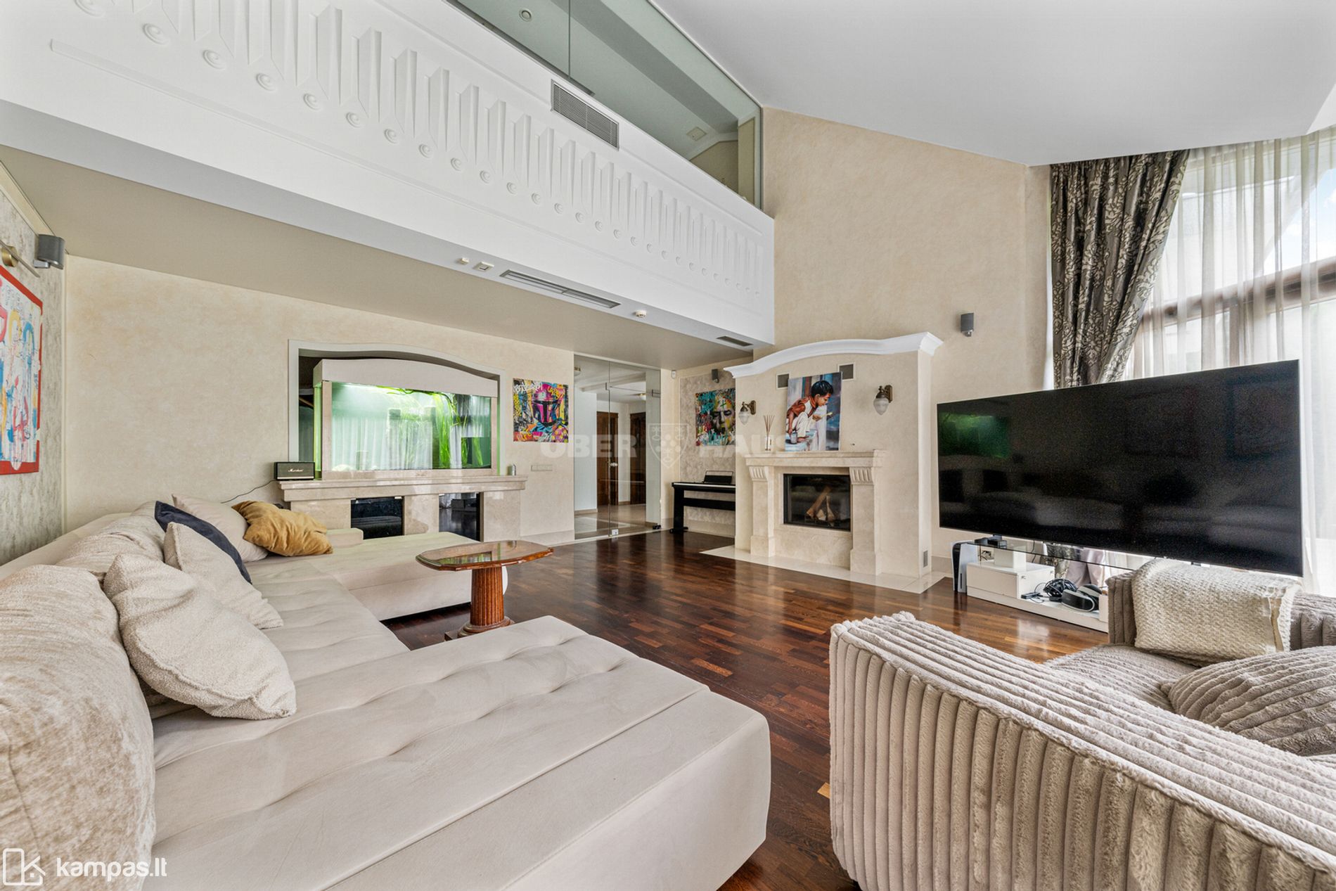 • Svetainė su žydiniu, aukštom lubom ir vitrininiais langais;