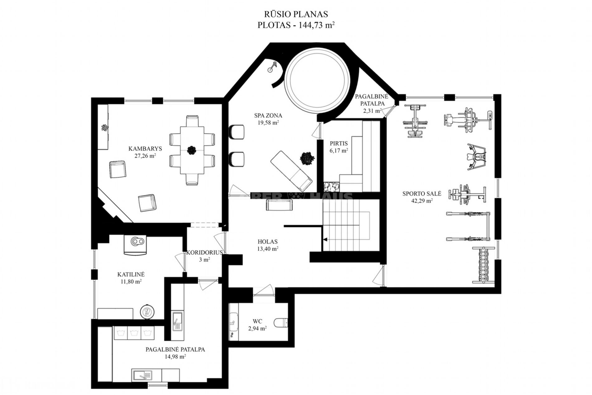 • Cokoliniame aukšte įrengtas baseinas-džakuzi;