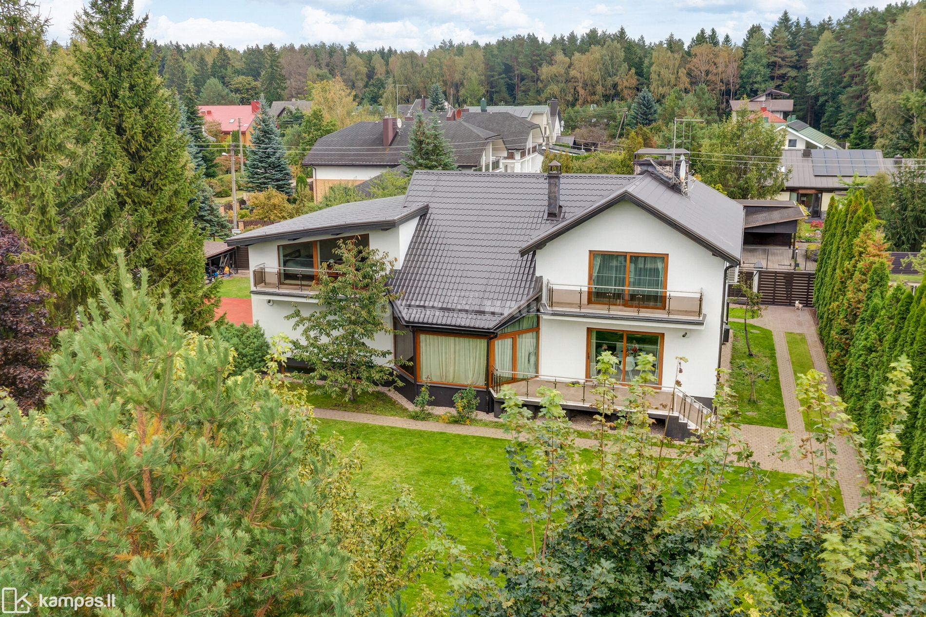 • Didelės saulėtos terasos/balkonai antrame aukšte su vaizdu į mišką;