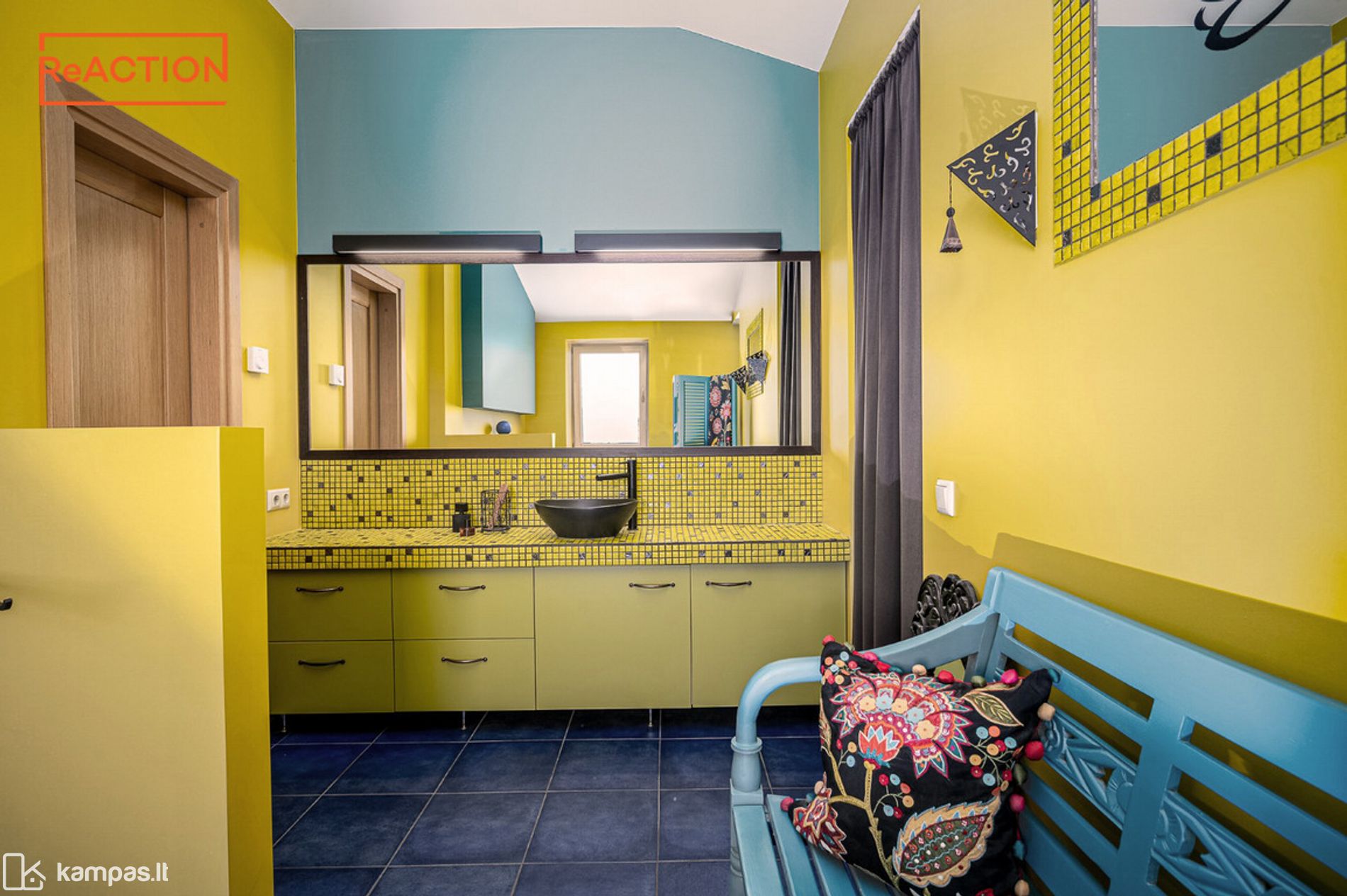 Parduodamas erdvus ir kokybiškas namas Bajoruose – žaliame, saugiame ir šeimoms itin palankiame rajone šiaurinėje Vilniaus miesto dalyje. Aplinka pasižymi solidžia kaimynyste, pušynais, tvarkingomis ir apšviestomis gatvėmis. Namui priklauso uždaras kiemas, o ant stogo įrengta saulės elektrinė.