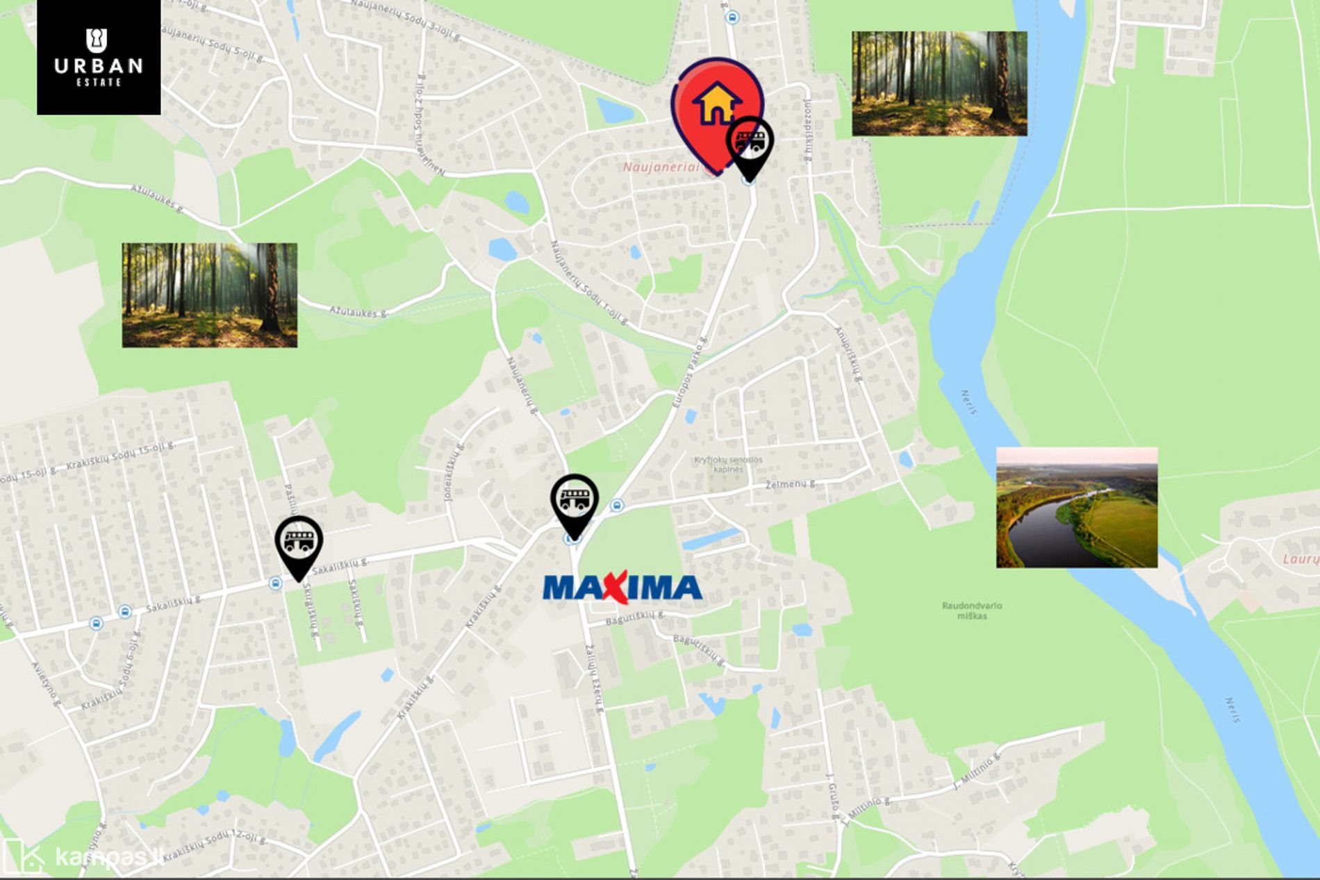 - Namas yra saugiame ir žaliame gyvenamųjų namų kvartale. Kvartalas įsiterpęs visiškoje gamtos apsuptyje, kur driekiasi Kryžiokių ir Verkių miškai, pašonėje vingiuoja Neries upė ir telkšo Balsio bei Gulbino ežerai.