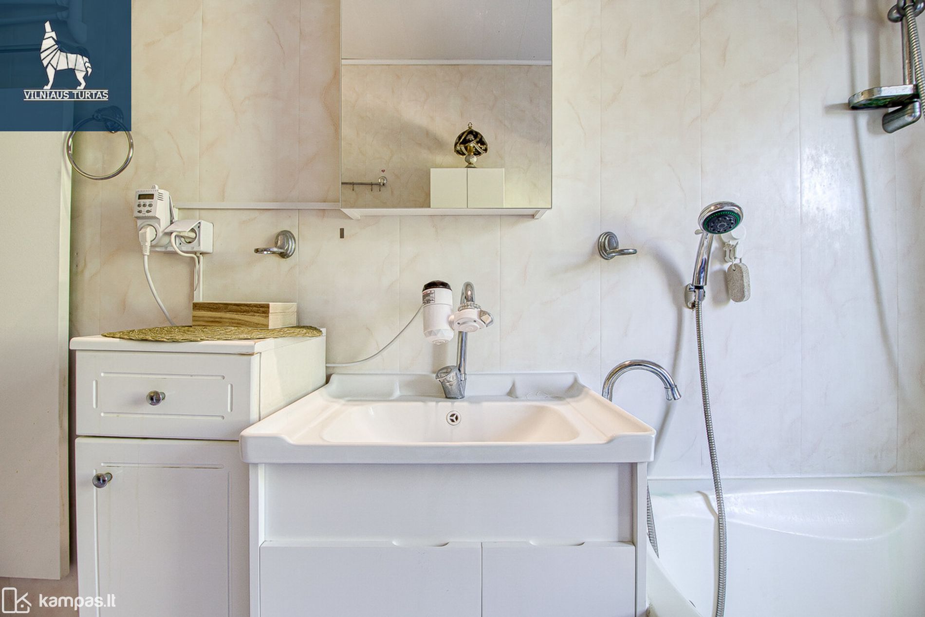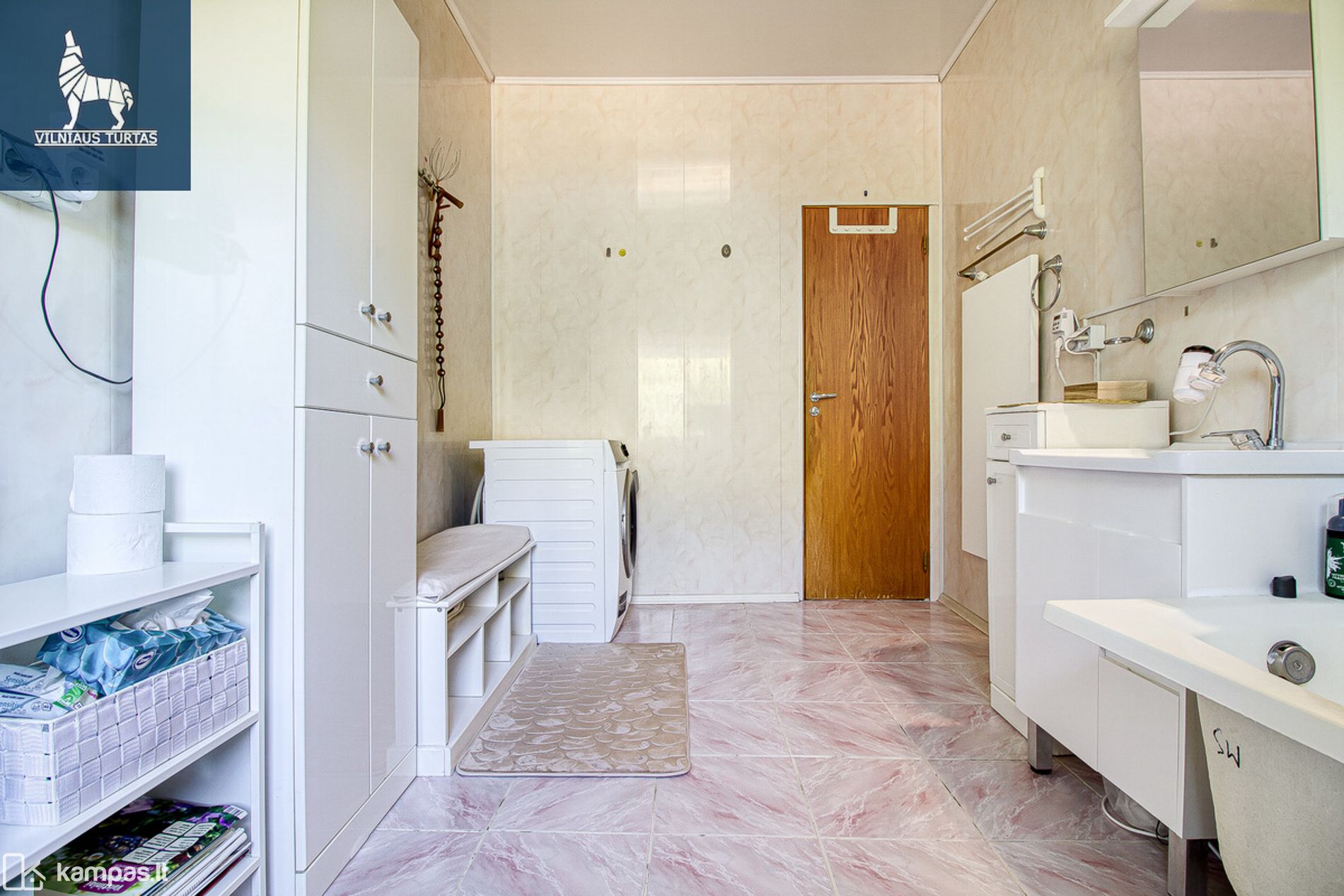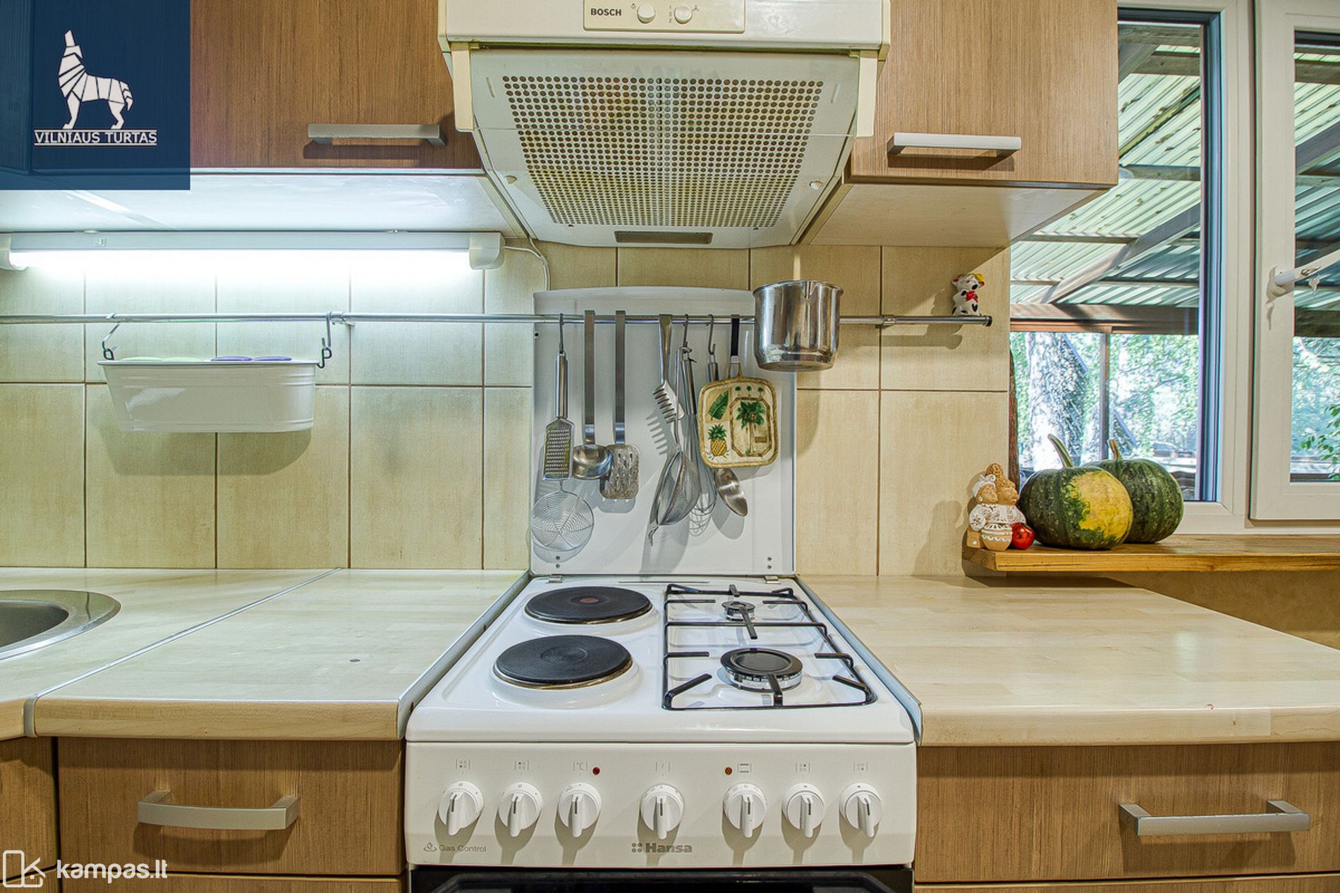 Erdvi vonia, įrengta virtuvė, dalis baldų lieka naujam savininkui.