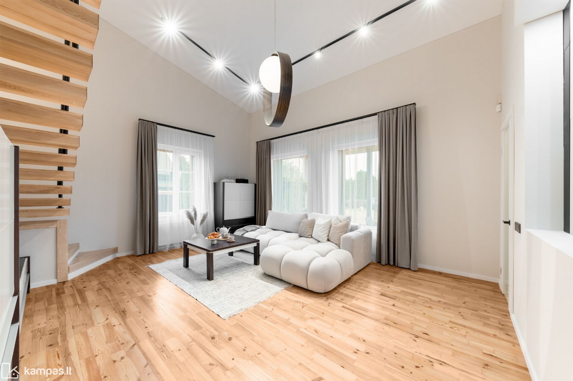 Namas išsiskiria funkcionaliu išplanavimu ir jaukiai apgalvotu dizainu. Aplinkui – žaluma, ramybė ir privatumas, tačiau miesto centras pasiekiamas greitai ir patogiai. Mikrorajonas pilnai išvystytas - visai šalia rasite mišką, mokyklą, vaikų darželį, parduotuvę bei polikliniką. Tai ideali vieta šeimai, vertinančiai jaukumą, patogumą ir gyvenimą arčiau gamtos.