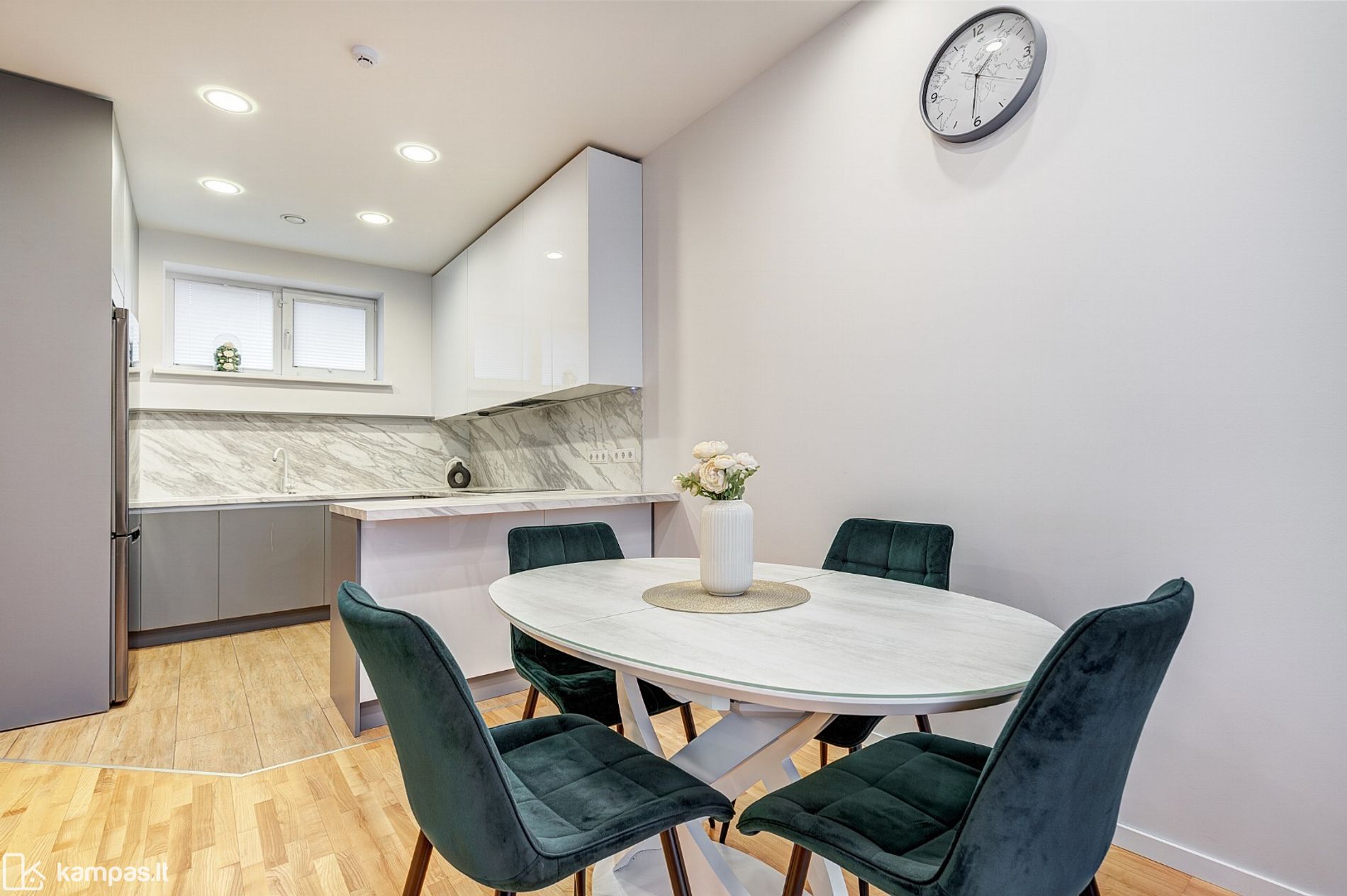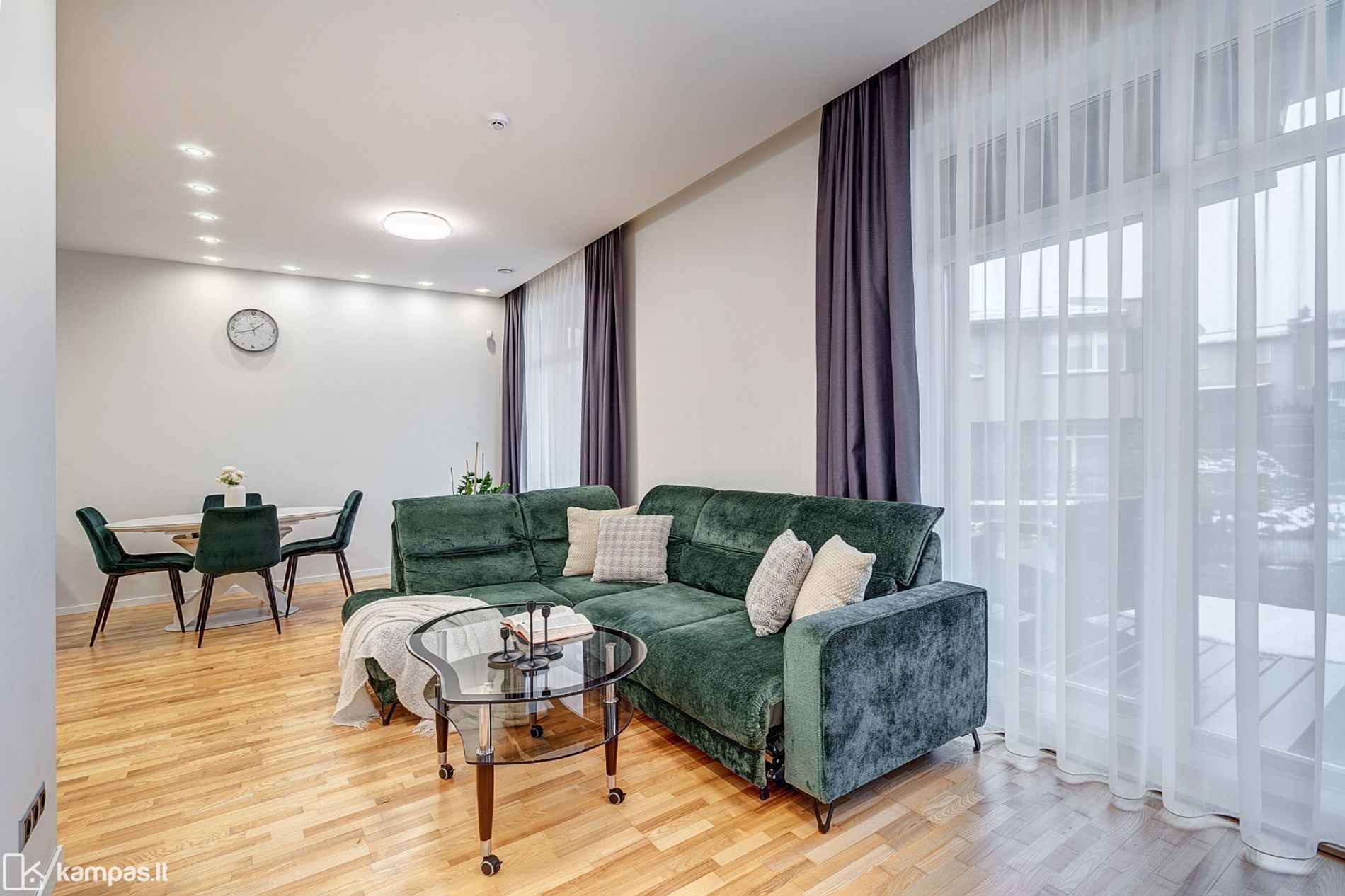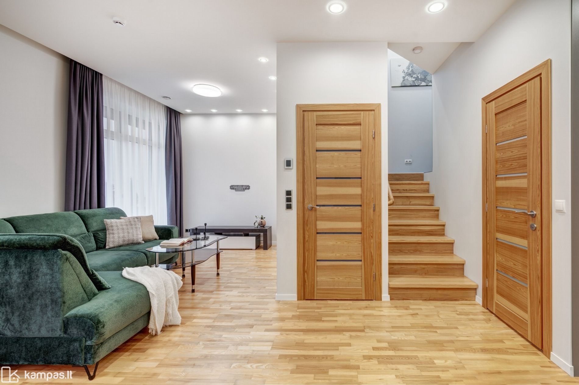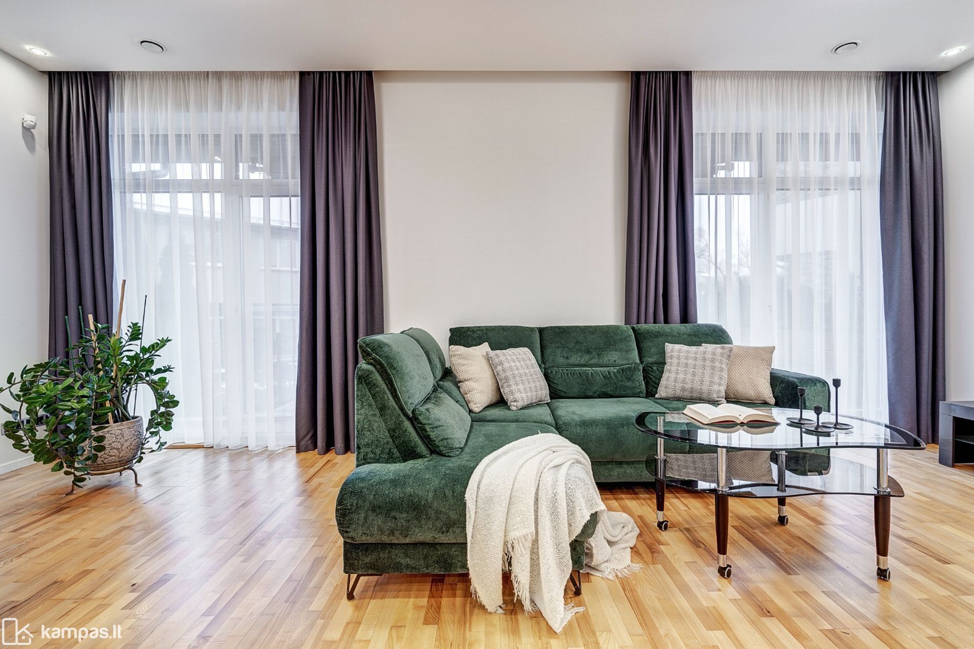 - Funkcionaliai ir patogiai suplanuotos erdvės: 3 miegamieji, virtuvė su svetaine kartu, 2 san.mazgai;