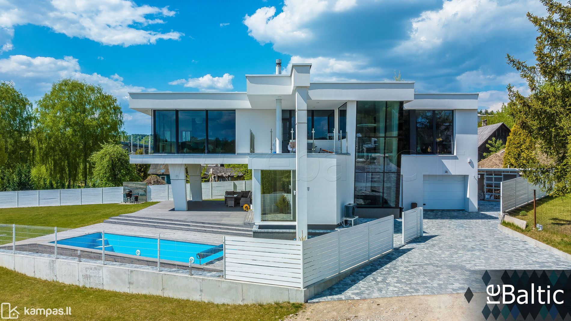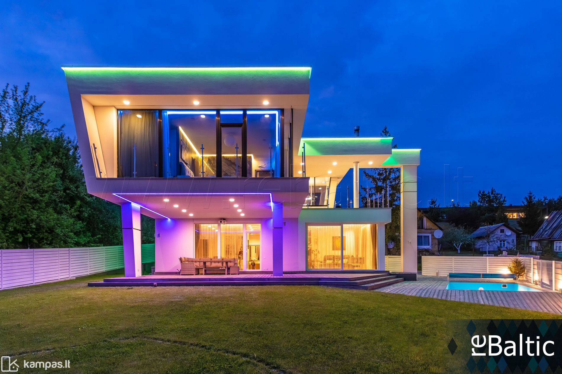 Modern architecture house on the riverbank in Bukčiai, in a prestigious neighborhood in a forest grove