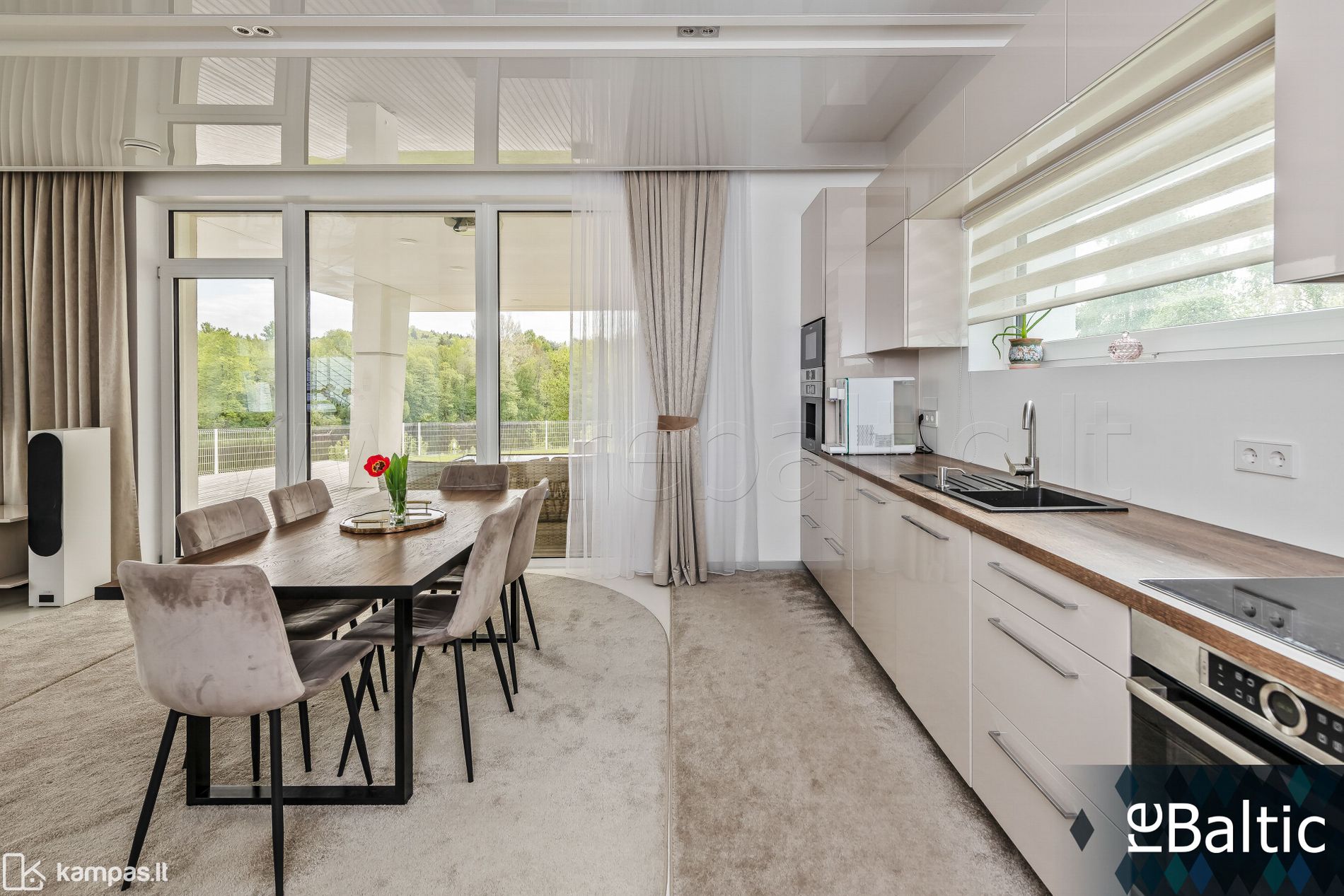 - Pirmame aukšte erdvi svetainė su vaizdais į upę. Šviesu, langai orientuoti į rytų, pietų ir vakarų puses. Upė pietinėje pusėje. Virtuvė su Bosch buitine technika, yra virtuvės kambarėlis/virtuvės.