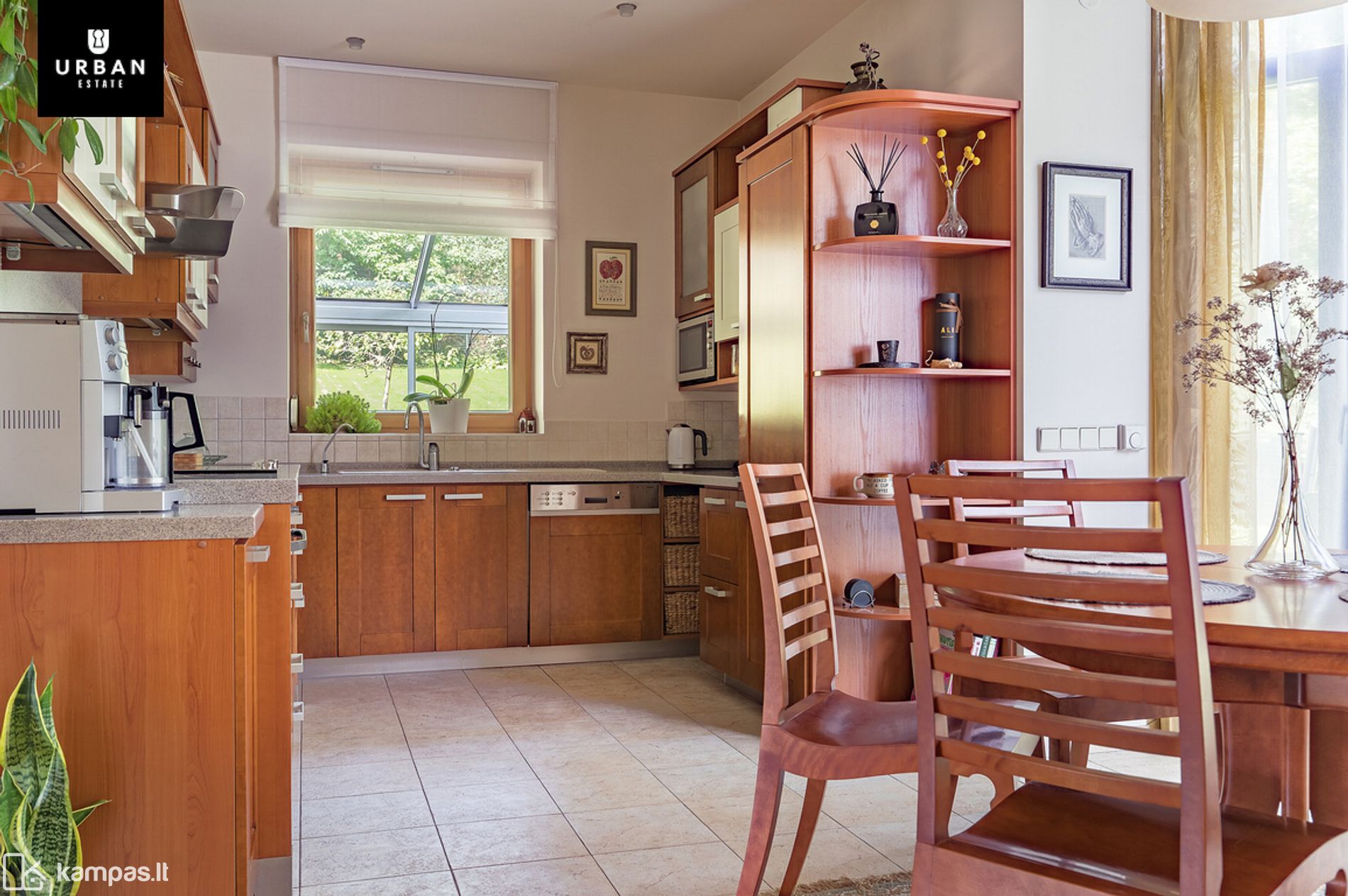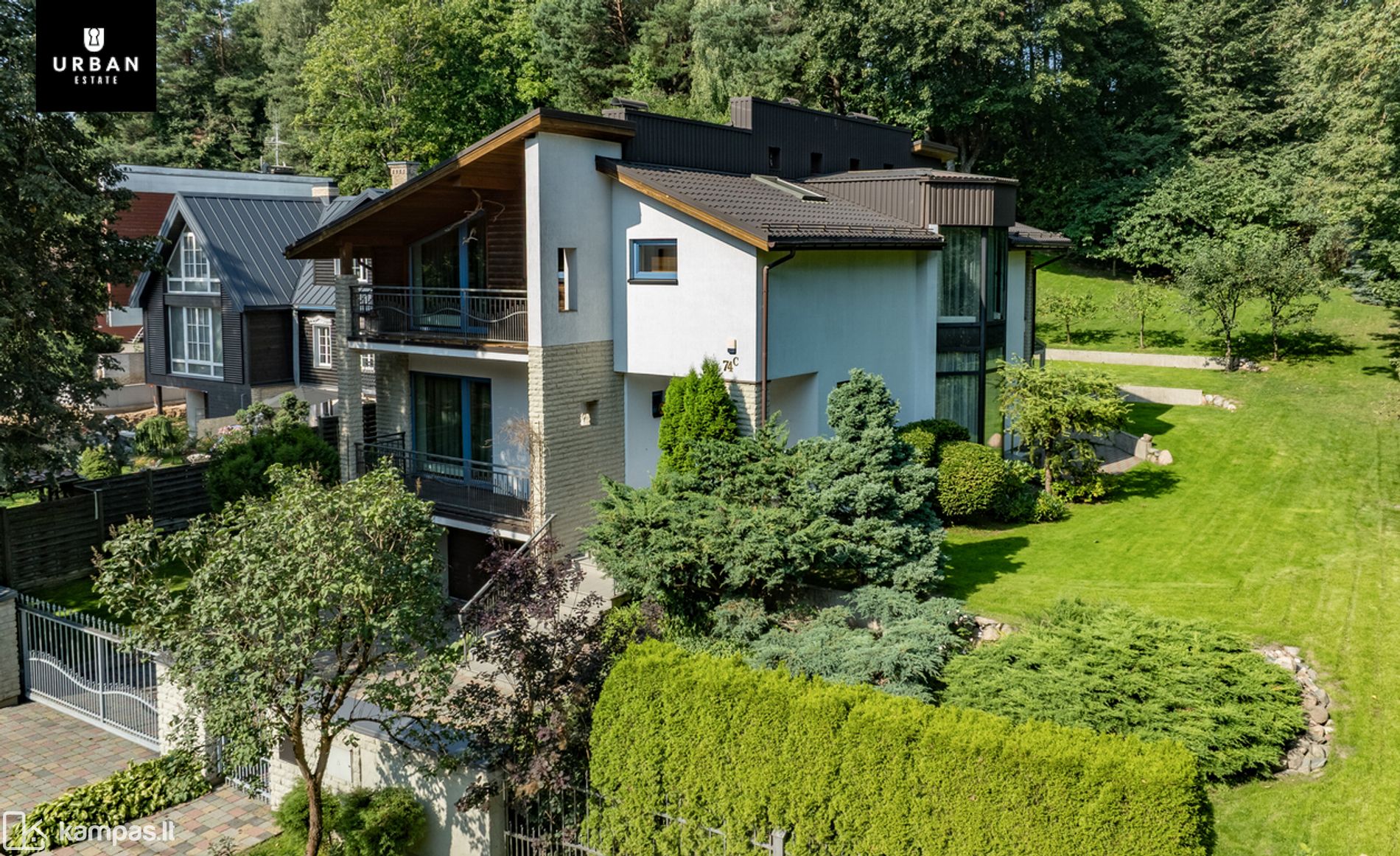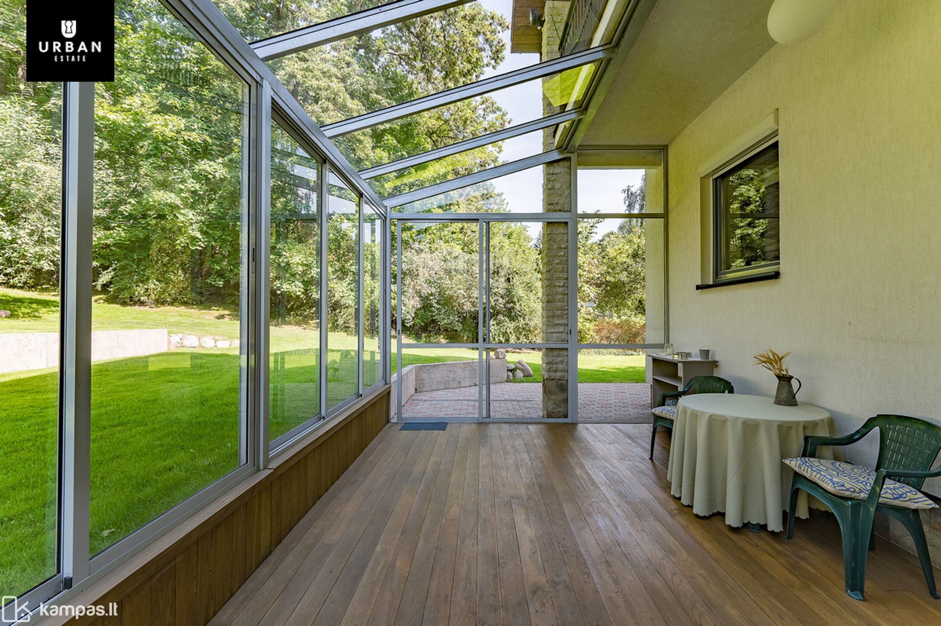 • Šie namai išsiskiria erdviu, išpuoselėtu privačiu žemės sklypu. Teritorija aptverta, išklota trinkelėmis, apsėta veja. Privatumo ir jaukumo teritorijai suteikia brandūs dekoratyviniai augalai. Sklypas ribojasi su kalvotu Pavilnio regioniniu parku.