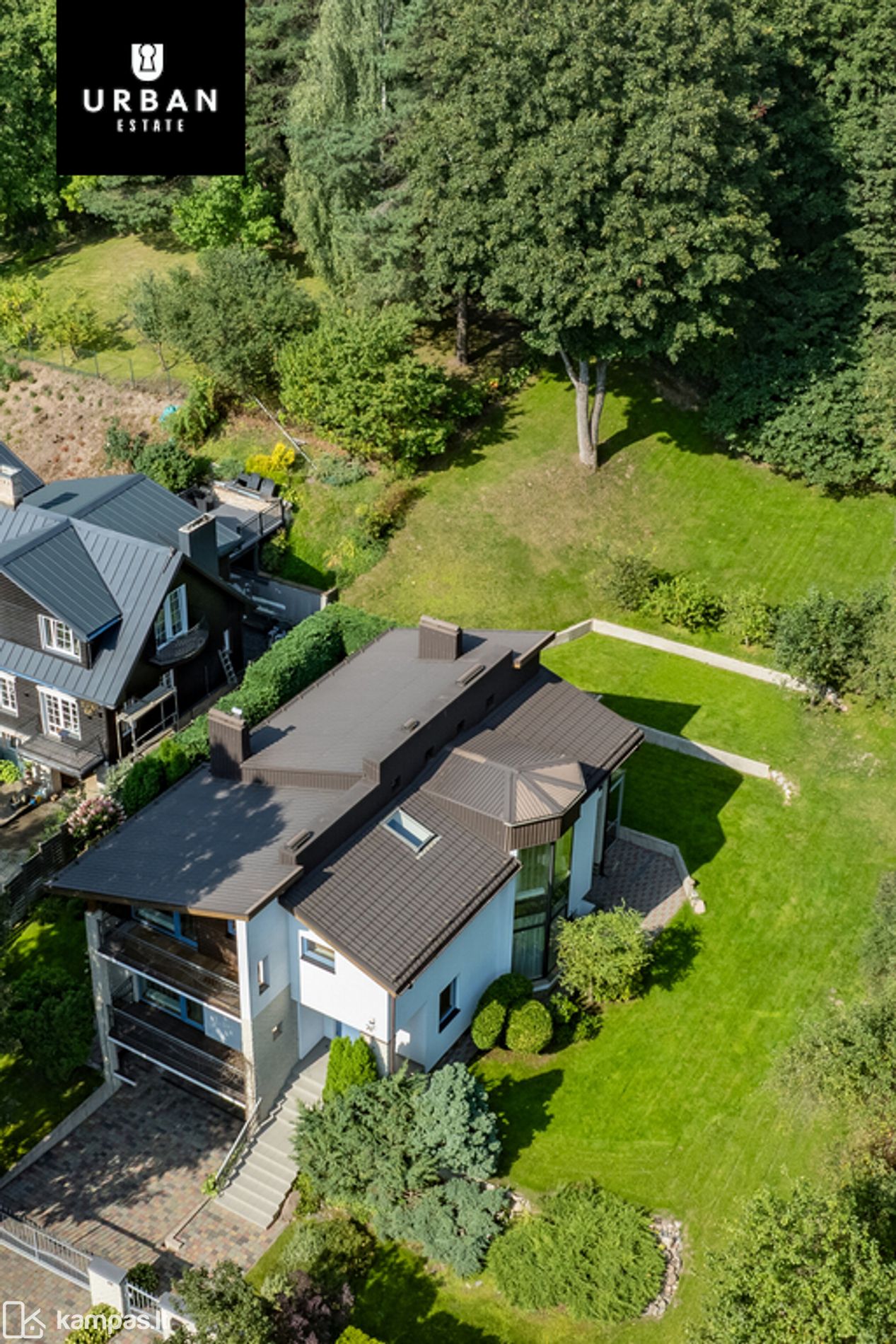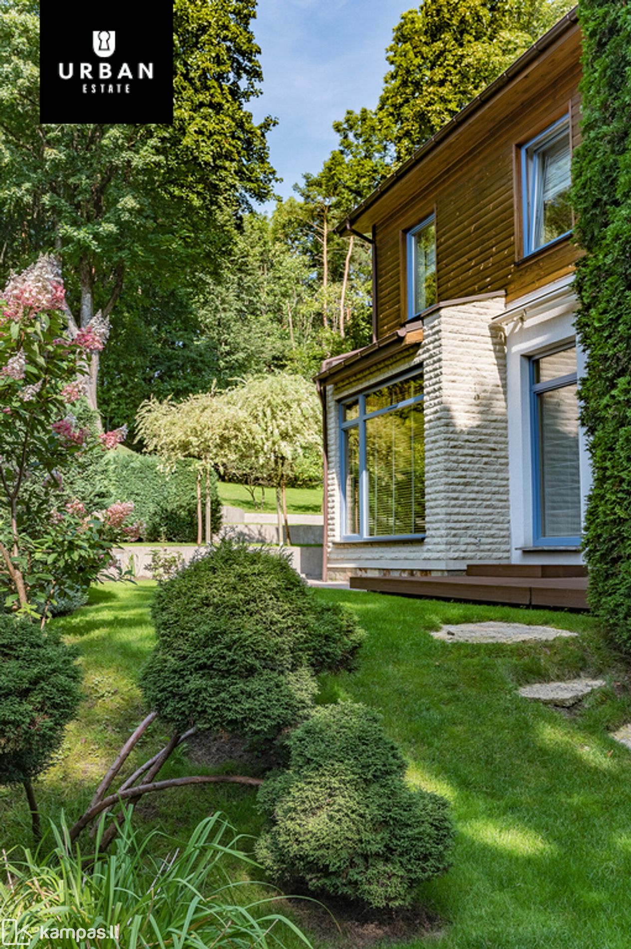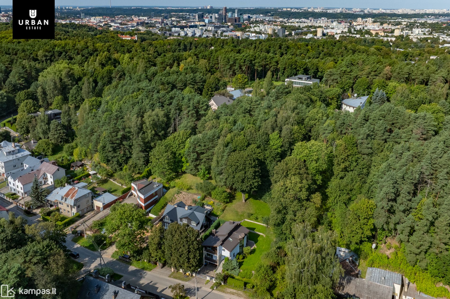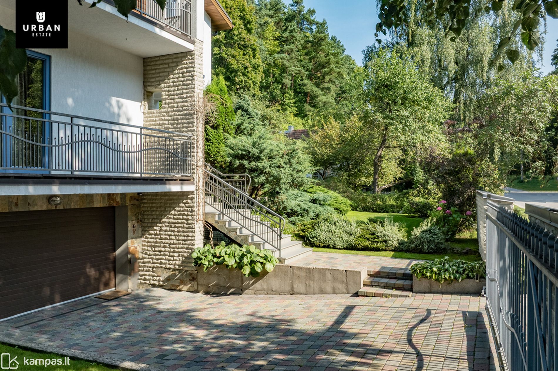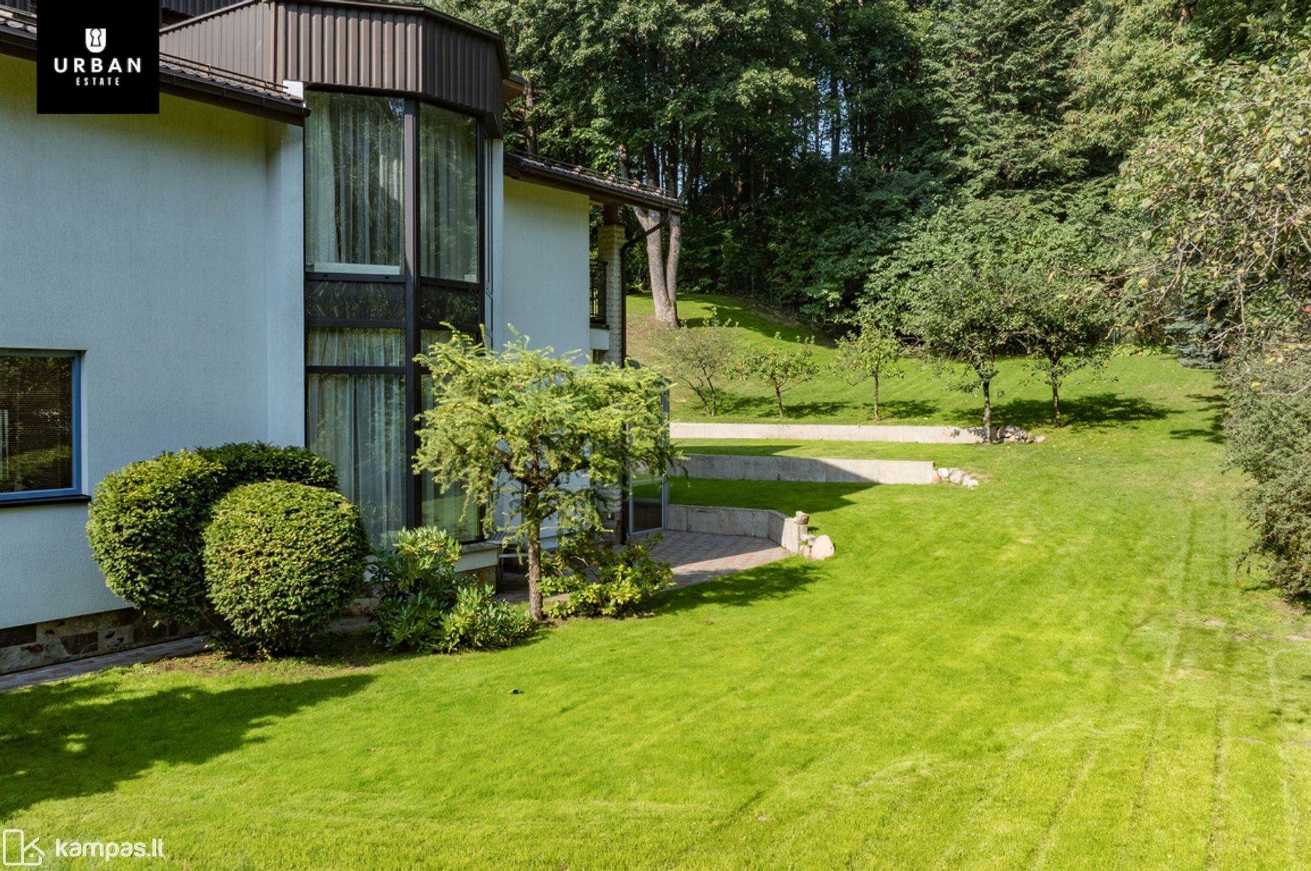 • Šie namai išsiskiria erdviu, išpuoselėtu privačiu žemės sklypu. Teritorija aptverta, išklota trinkelėmis, apsėta veja. Privatumo ir jaukumo teritorijai suteikia brandūs dekoratyviniai augalai. Sklypas ribojasi su kalvotu Pavilnio regioniniu parku.