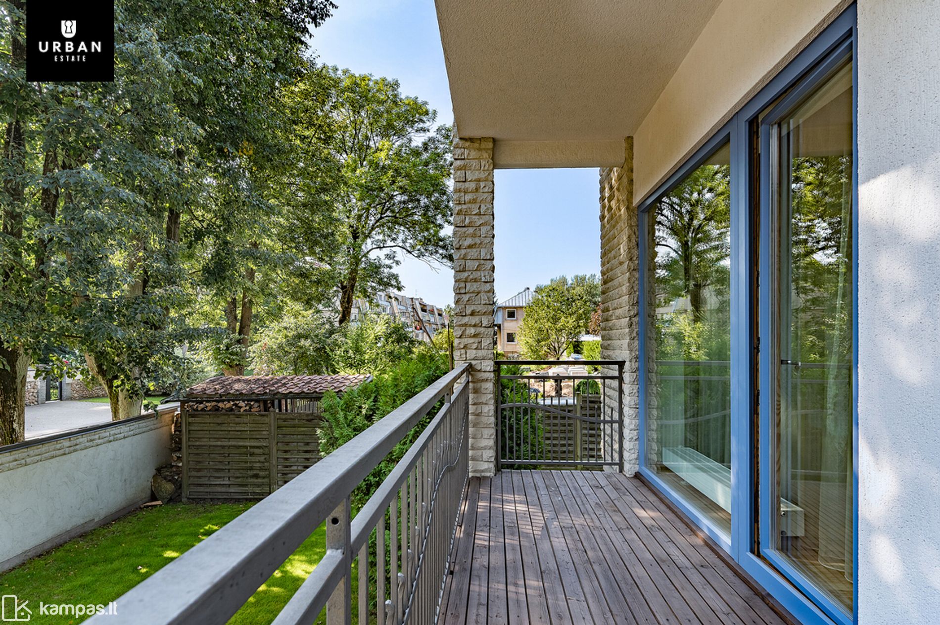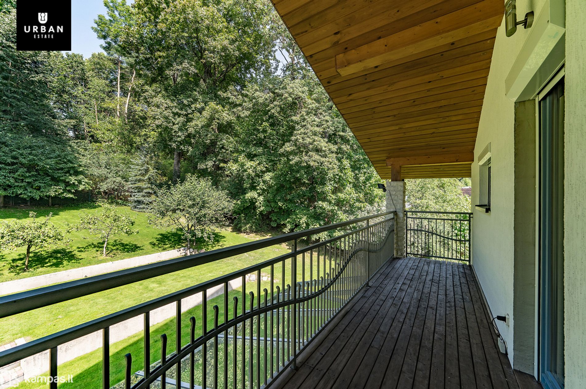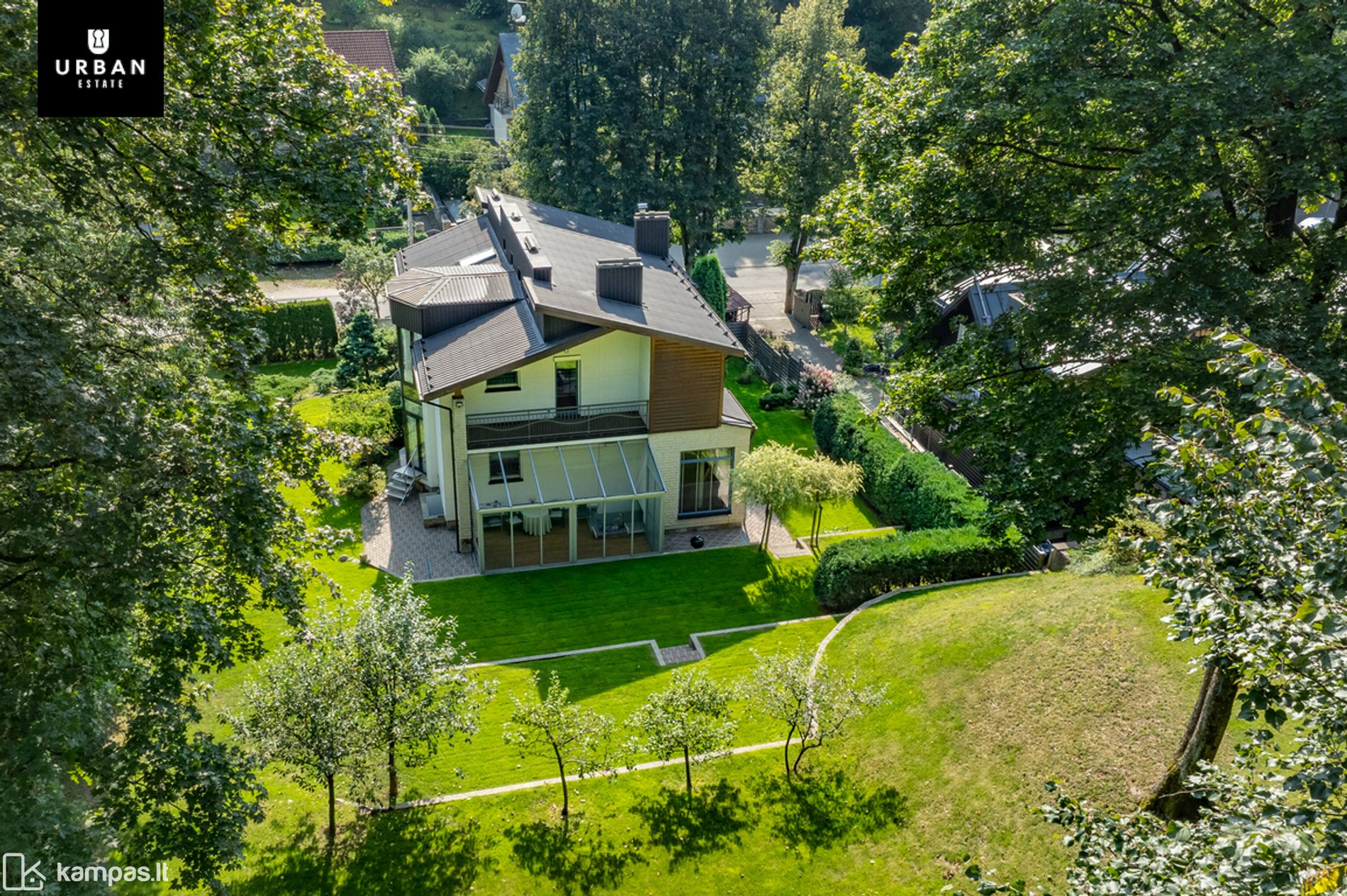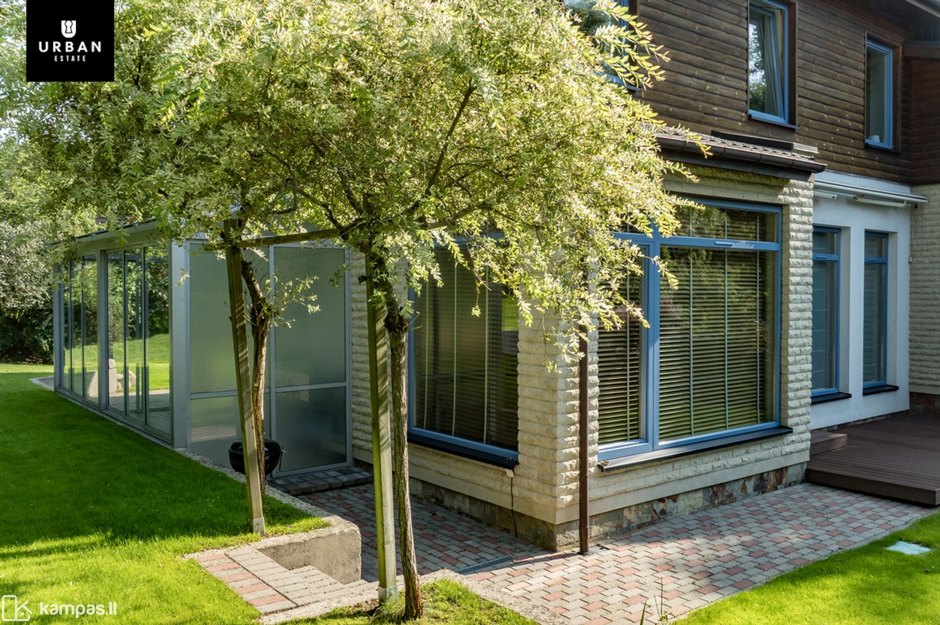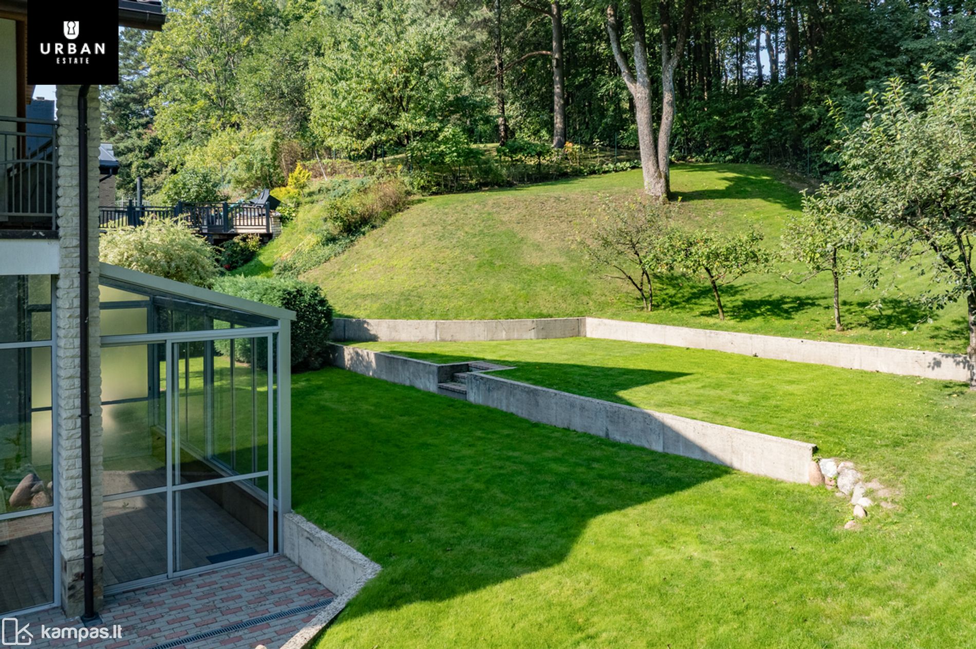 • Šie namai išsiskiria erdviu, išpuoselėtu privačiu žemės sklypu. Teritorija aptverta, išklota trinkelėmis, apsėta veja. Privatumo ir jaukumo teritorijai suteikia brandūs dekoratyviniai augalai. Sklypas ribojasi su kalvotu Pavilnio regioniniu parku.