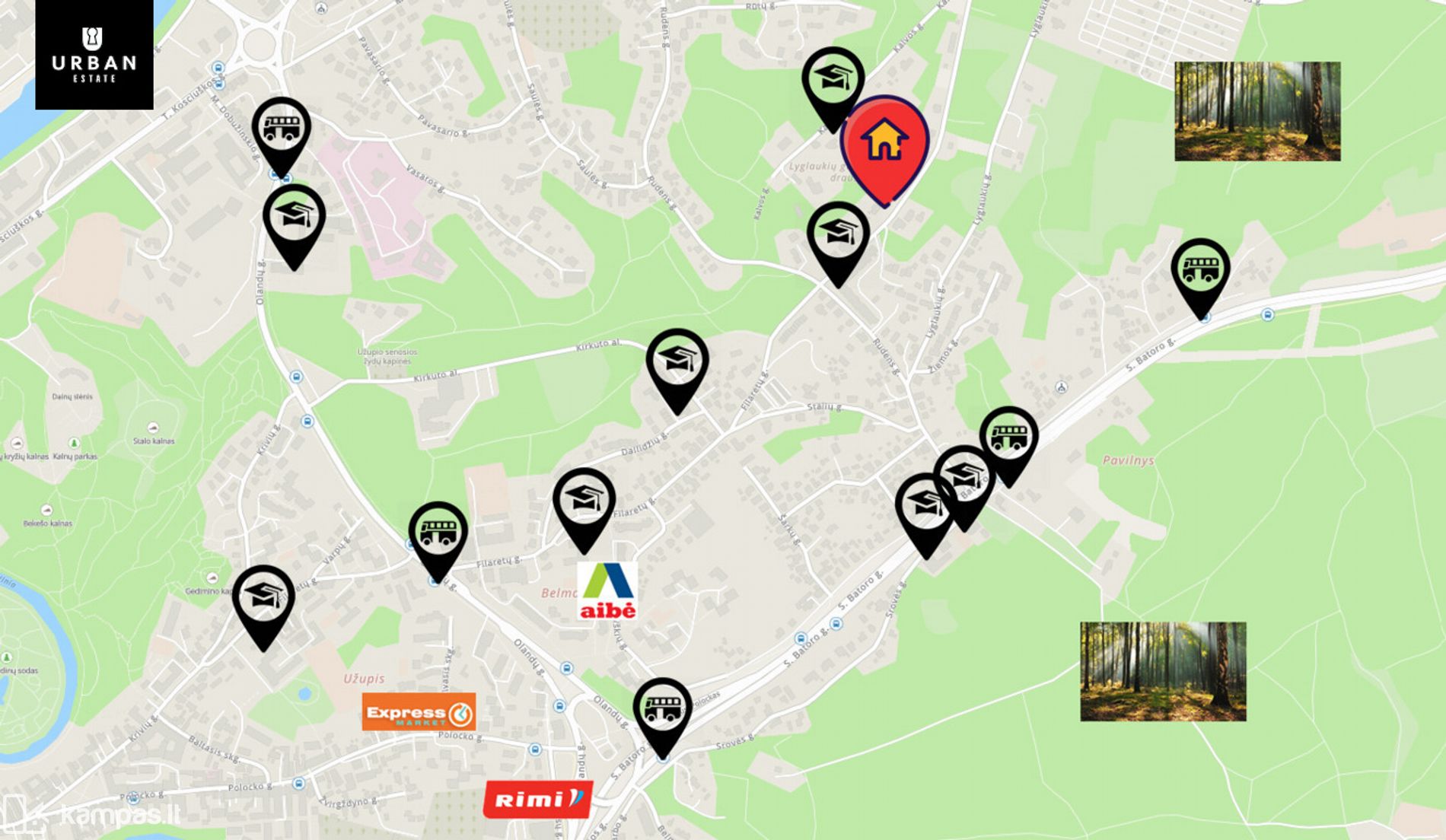 • Įsikurkite ramiame gyvenamųjų namų kvartale su solidžia kaimynyste. Tačiau visus reikalingus objektus nuo namų pasieksite akimirksniu - prie pat yra viešojo transporto stotelė, mokymo bei gydymo įstaigos, prekybos centrai. O iki Senamiesčio vos keletas minučių pėsčiomis.