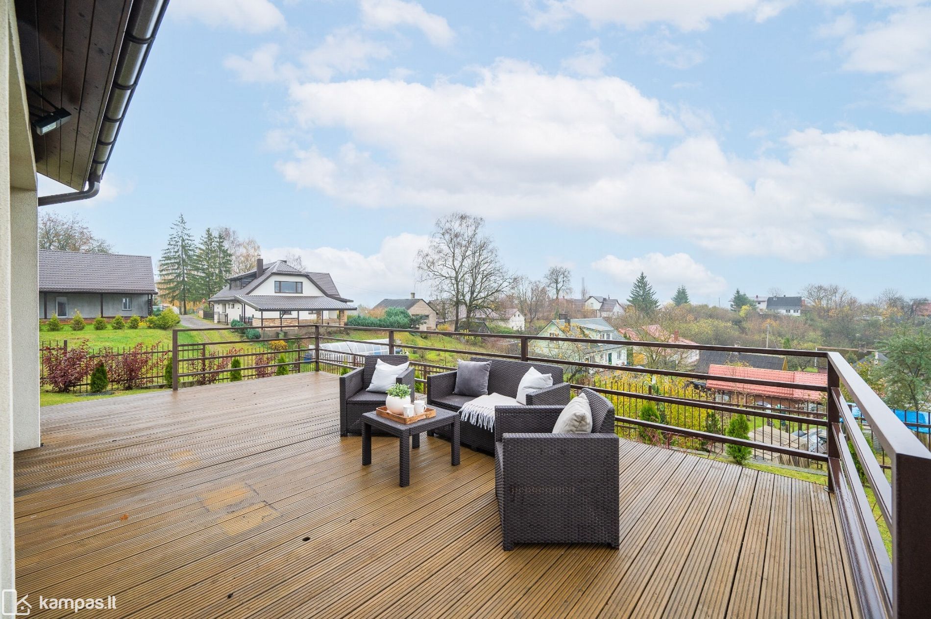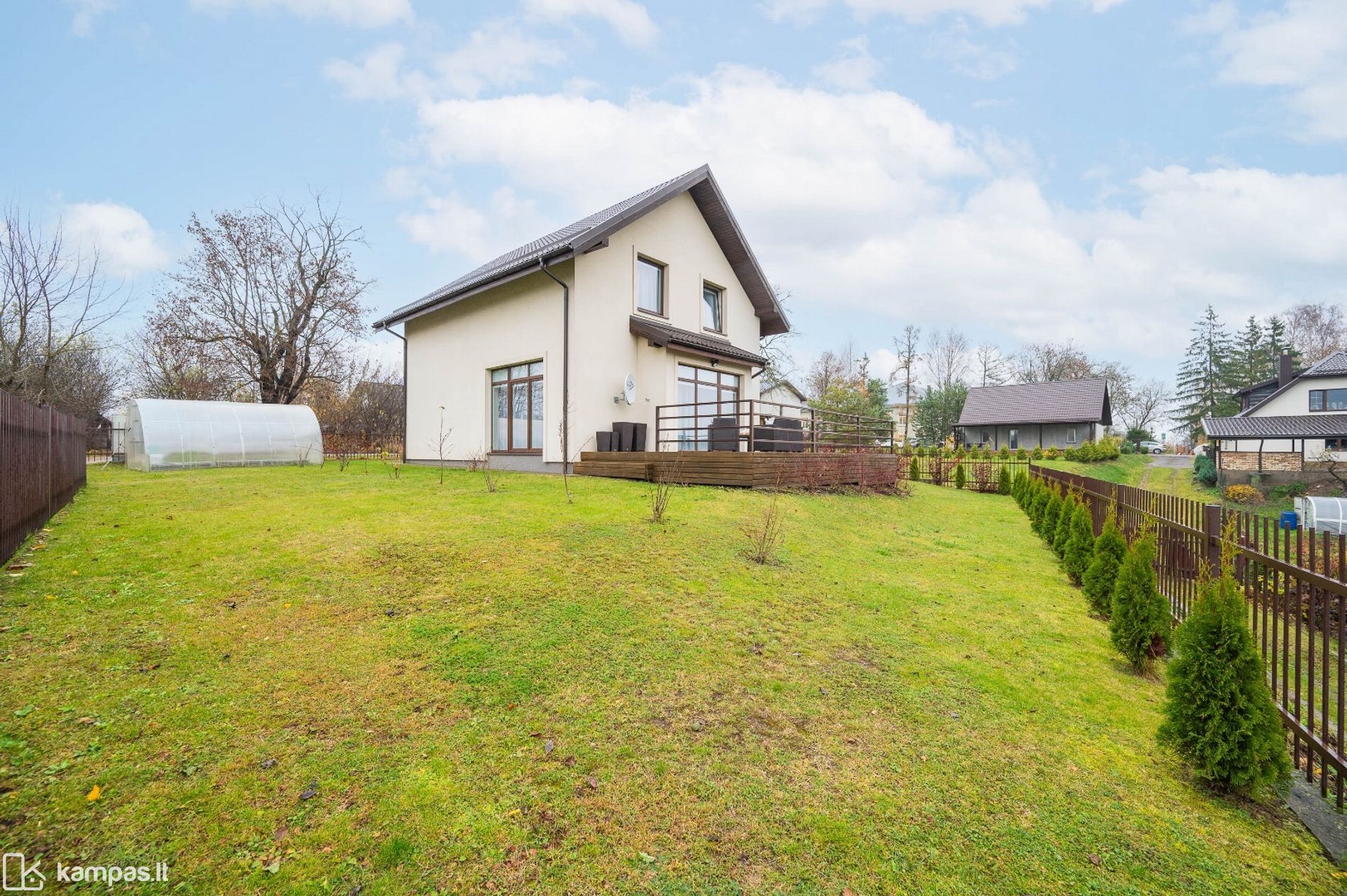 Namas stovi ant kalvos, turi erdvią lauko terasą, nuo kurios atsiveria graži panorama į bažnyčių stogus. Sklypas – beveik 6 arų, aptvertas ir puikiai sutvarkytas, su įrengtu sandėliuku, šiltnamiu bei gausia erdve poilsiui ar sodininkystei.