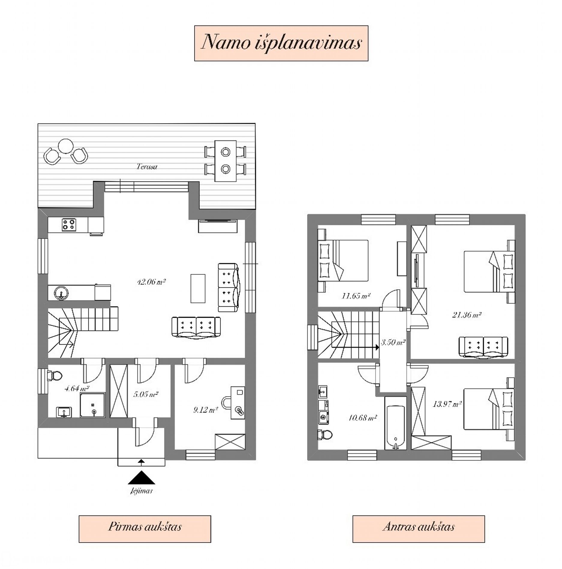 • Virtuvės/svetainės zona – 42.06 kv.m;