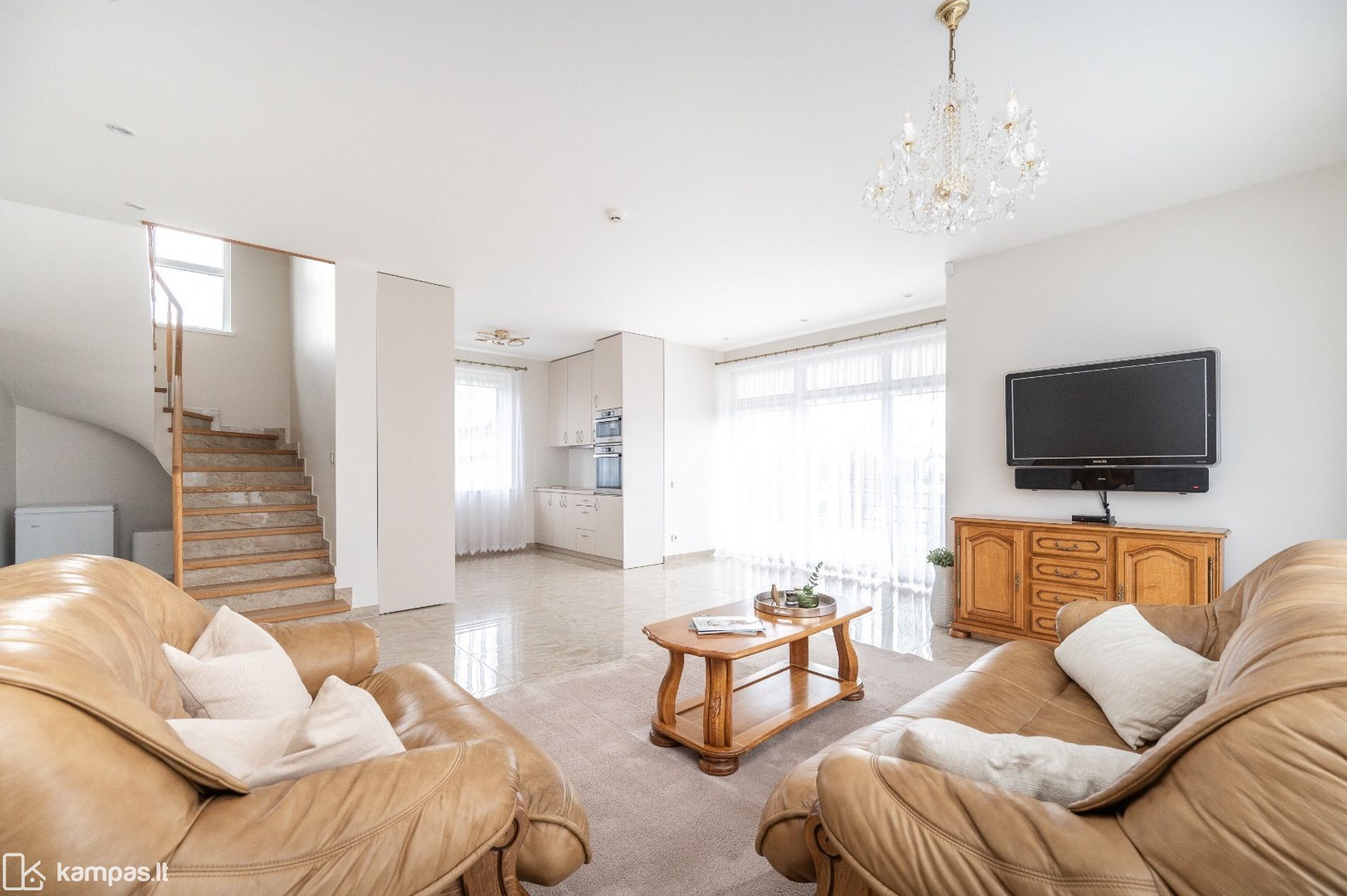 Išplanavimas apgalvotas iki smulkmenų – erdvės sklandžiai pereina viena į kitą, sukuriant patogią kasdienio gyvenimo tėkmę. Interjere dera modernumas ir subtili elegancija: švarios linijos, kokybiškos medžiagos, išlaikytas stiliaus vientisumas.