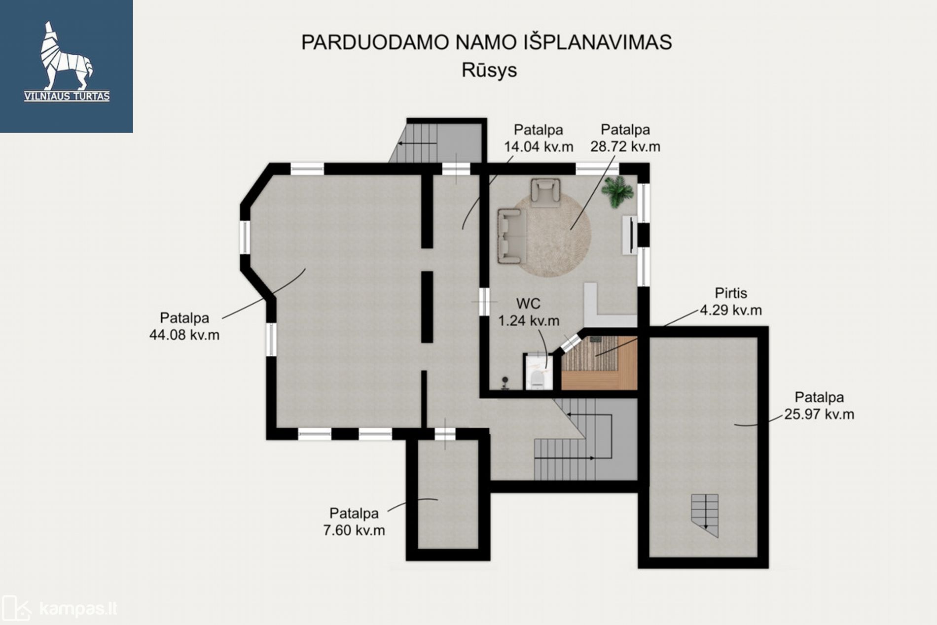 ✓ Didelis rūsys su pirtimi, wc, dušu ir erdve daiktams, poilsiui ar pramogoms.