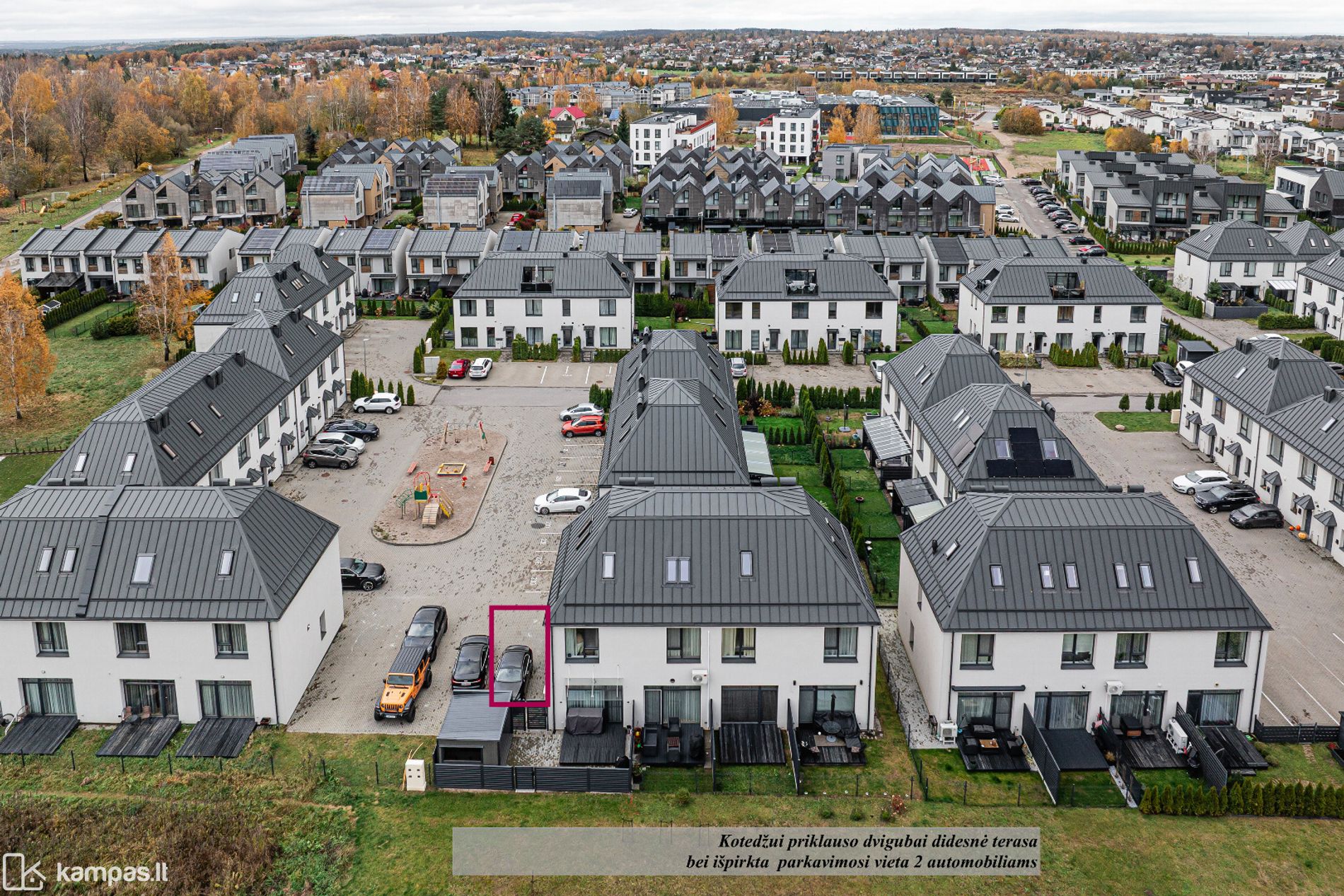 Kotedžui nuosavybės teise priklauso žemės sklypas, kur galimas parkavimas net 2 automobiliams.