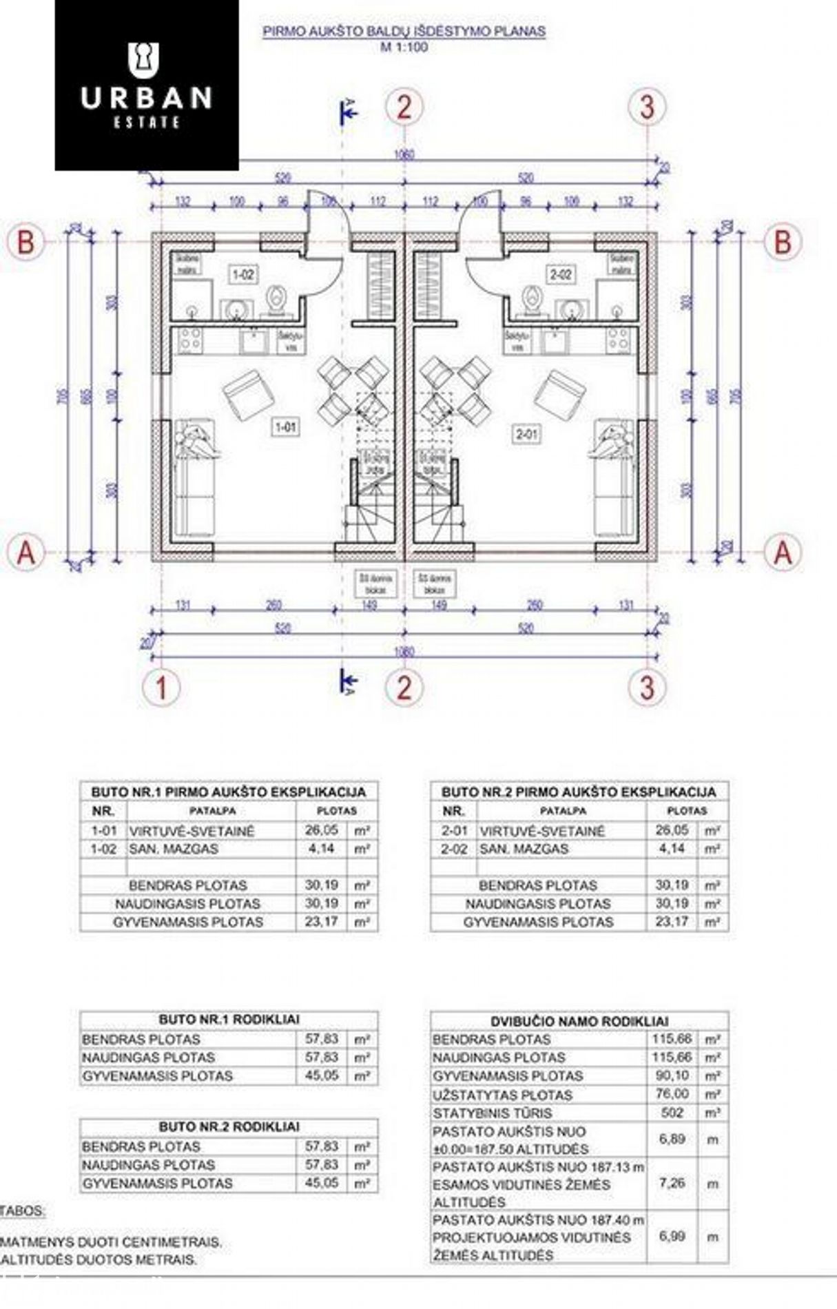 Sklypų plotai: Iki 1 aro kiekvienam butui