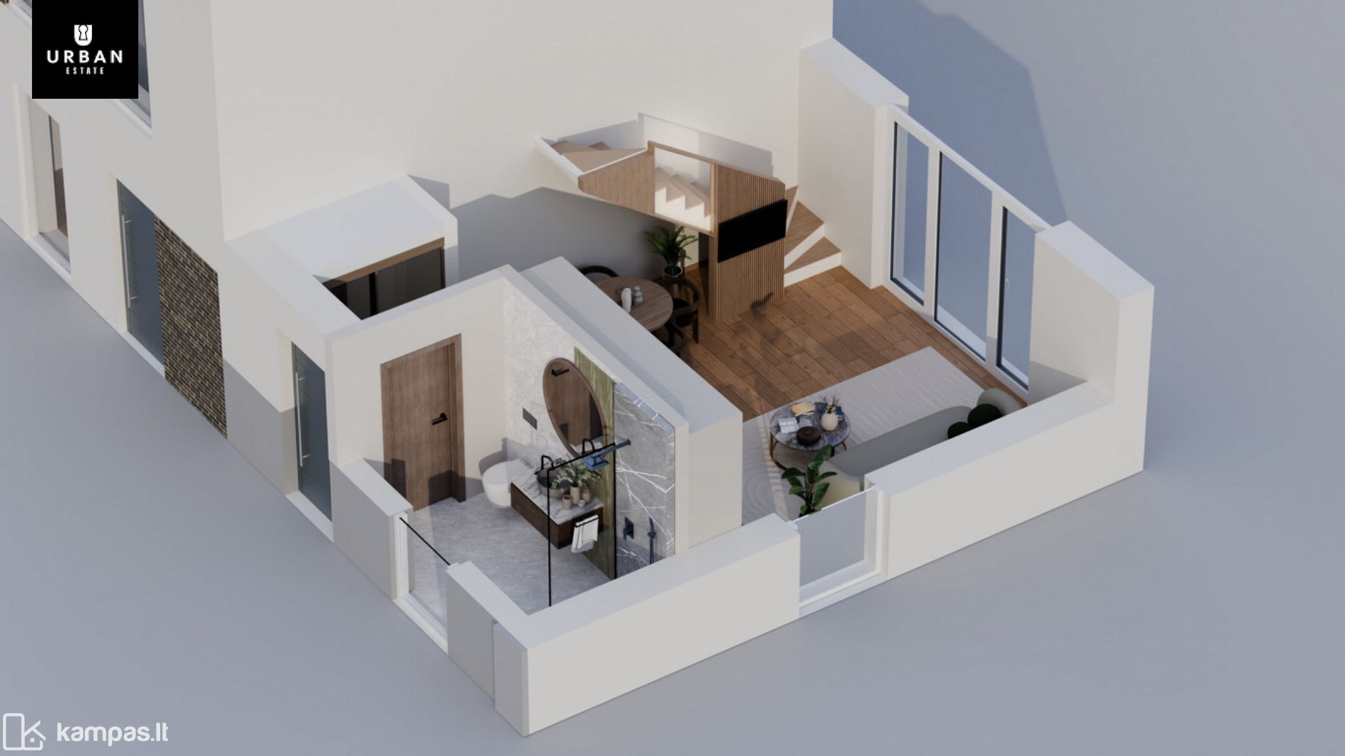 - Nuosavas kiemelis: Idealus poilsiui, saulės vonioms ar grill vakarams su draugais. Kiemelis yra aptvertas, suteikiantis daugiau privatumo, o terasa jau įrengta su trinkelių danga ir įeina į kainą. Papildomai galima įrengti lauko baldus ar stoginę pagal jūsų poreikius.