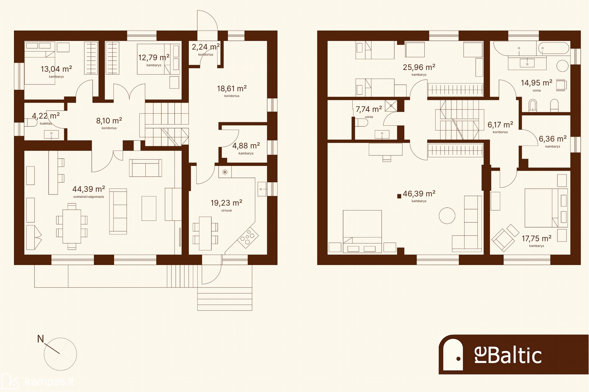 - Antrame aukšte dar trys miegamieji kambariai ir dvi vonios