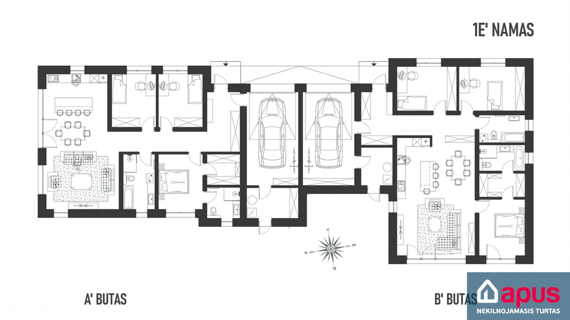 • 4 kambariai, 2 san. mazgai, drabužinės, sandėliukai bei garažai 1 arba 2 automobiliams.