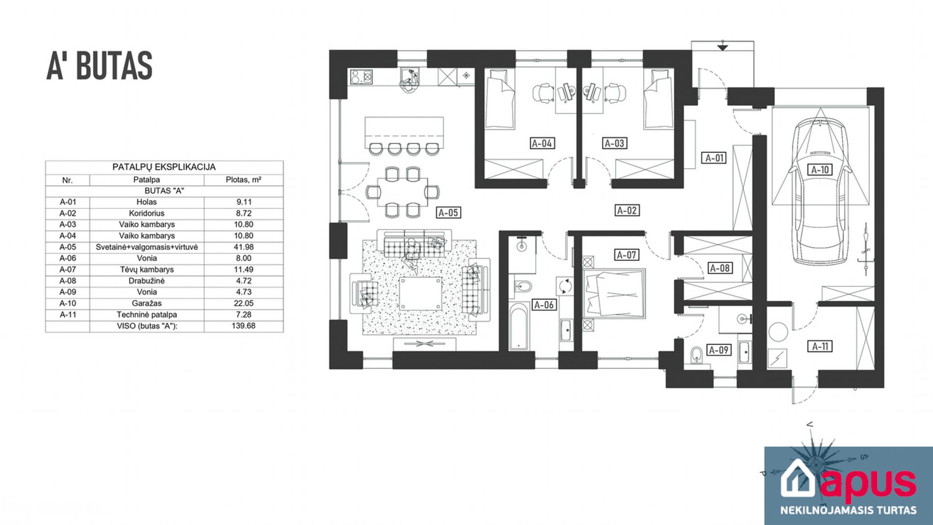 • Vėdinimas: numatytas priverstinis ir pro pravirus langus. Ortakiai ir rekuperatorius įrengiami atskiru susitarimu.
